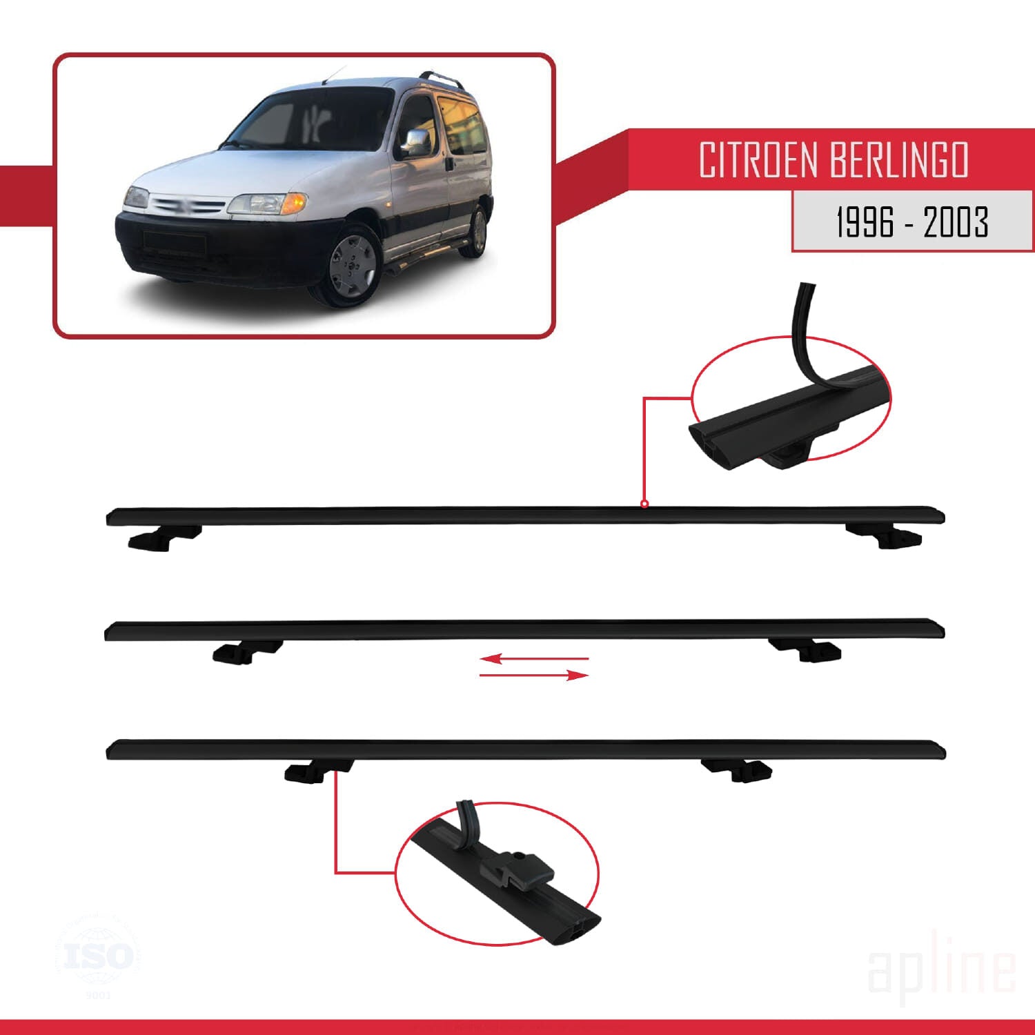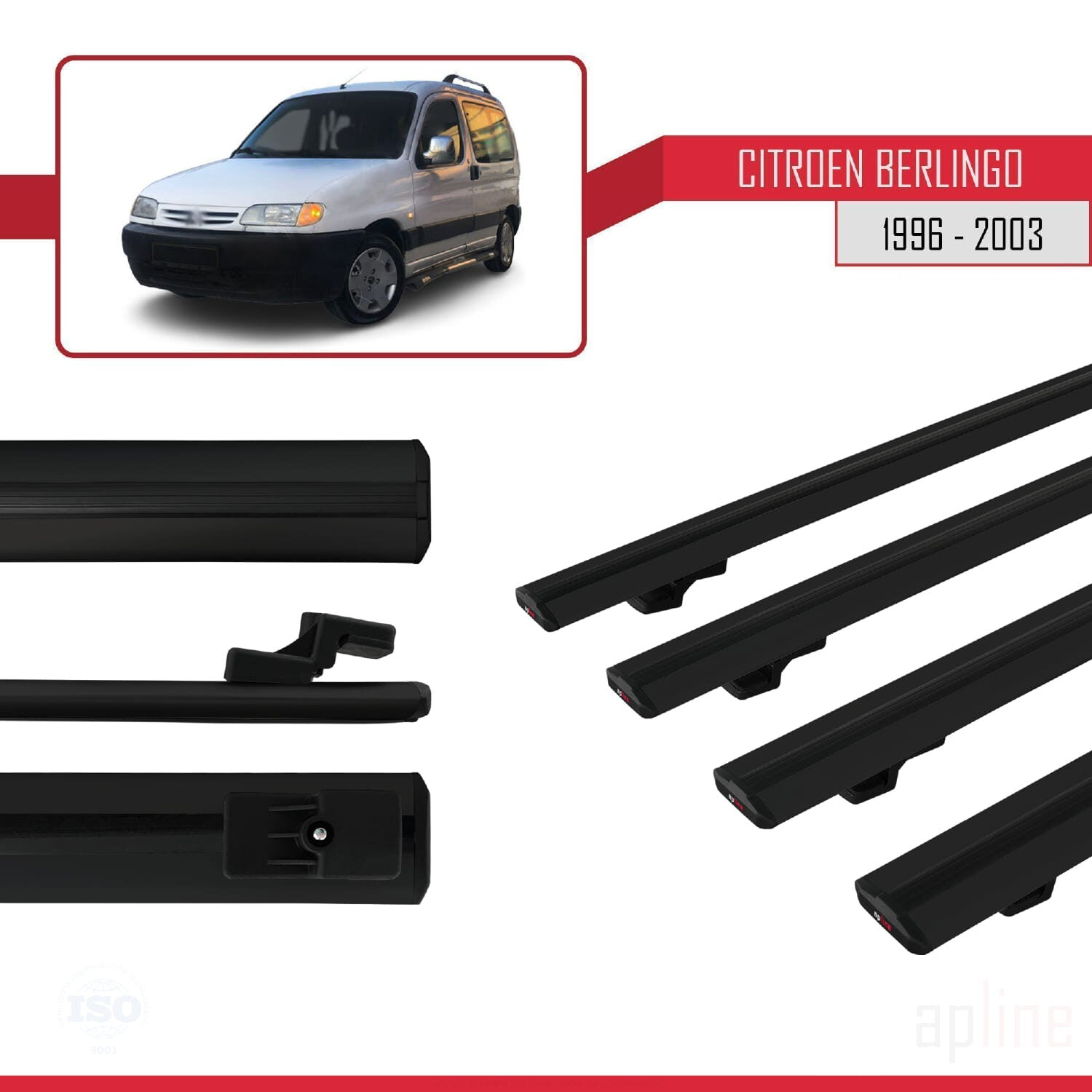 Compatible with Citroen Berlingo (M49) 1996-2003 BASIC Model Car Roof Rack Cross Bar Black Aluminium 4 Bars