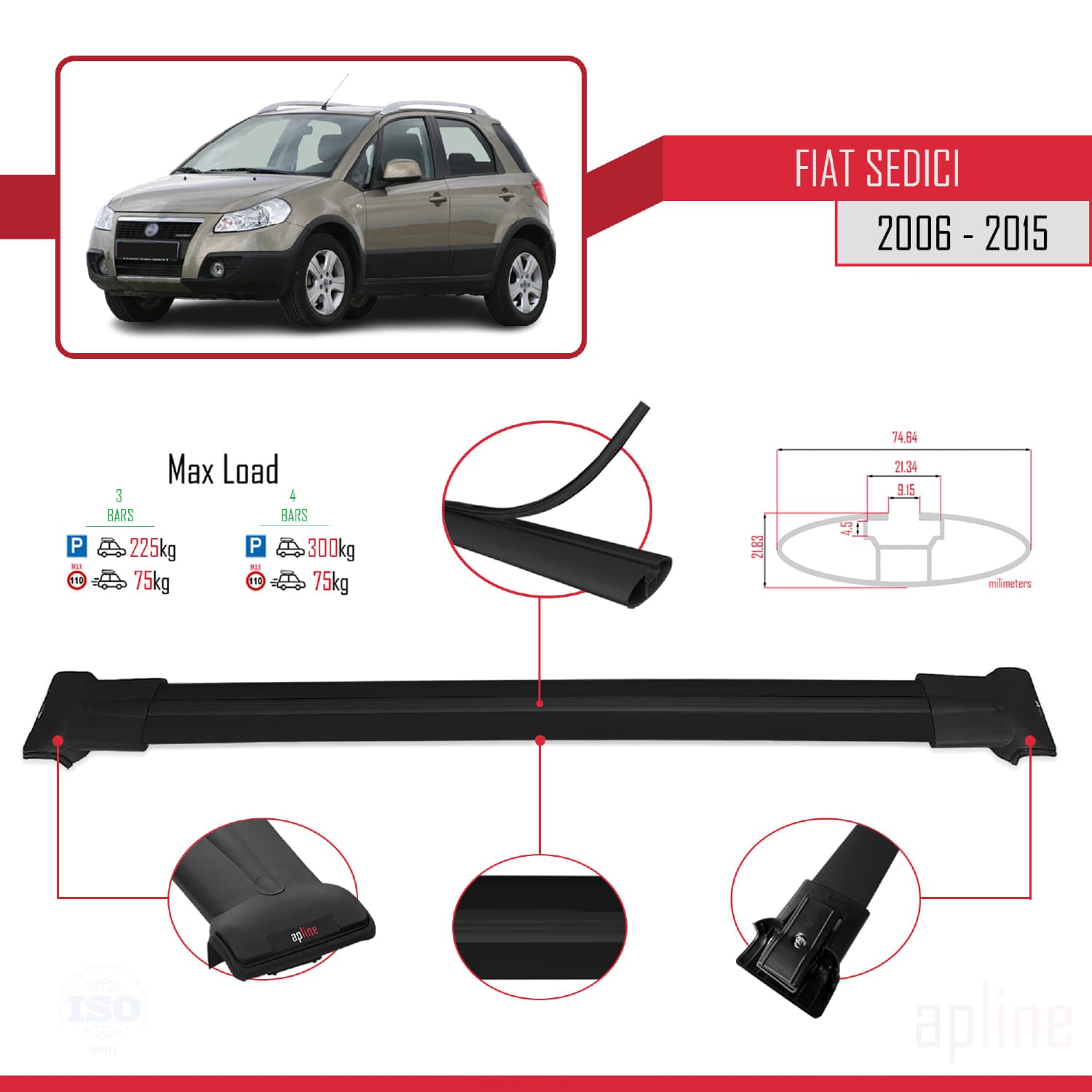 Compatible avec Fiat Sedici 2006-2015 FLY Model Barres de Toit Railing Porte-Bagages de Voiture Noir Aluminium 3 Barres