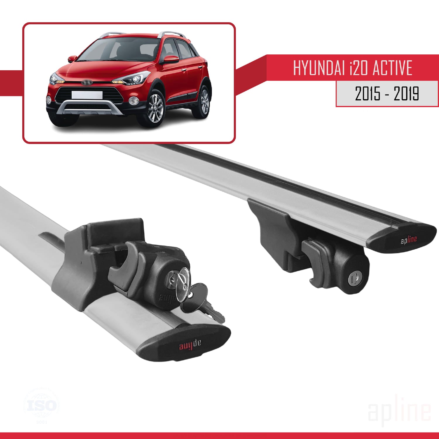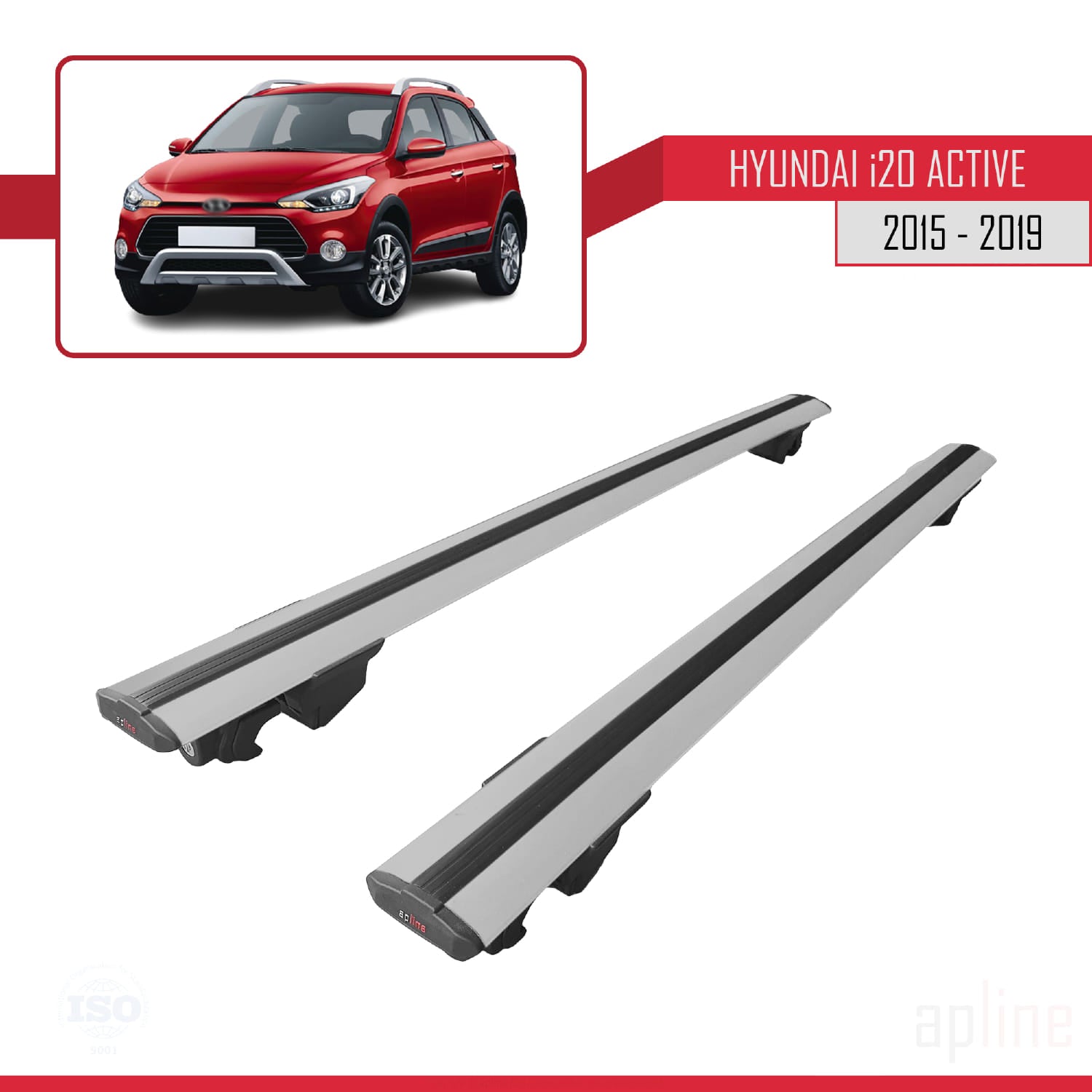Compatible with Hyundai i20 II Active 2015-2019 HOOK Model Car Roof Rack Cross Bar Grey Aluminium 2 Bars