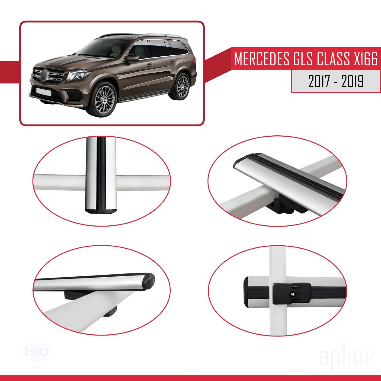 Compatible avec Mercedes GLS Class X166 2017-2019 BASIC Model Barres de Toit Railing Porte-Bagages de Voiture Gris Aluminium 3 Barres