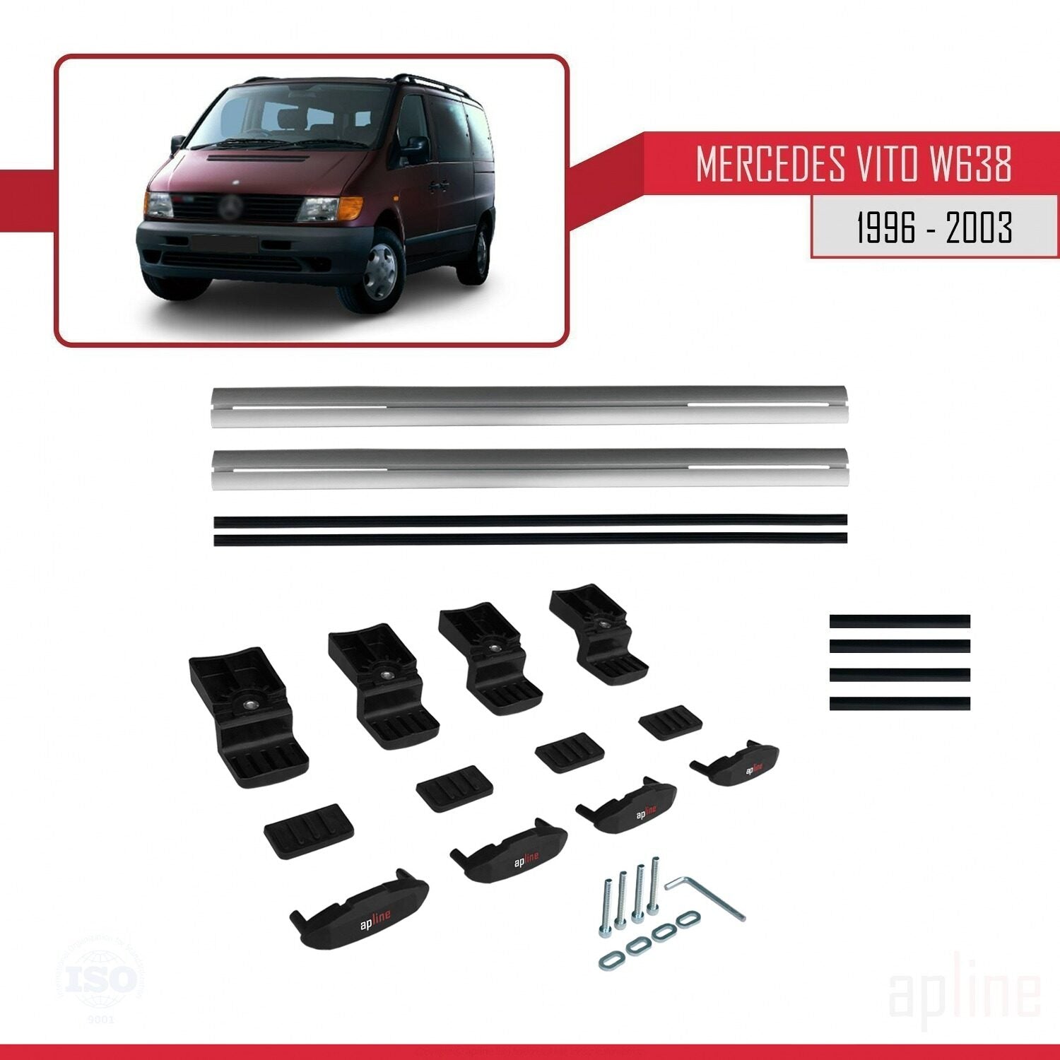 Compatible with Mercedes Vito (W638) 1996-2003 BASIC Model Car Roof Rack Cross Bar Grey Aluminium 2 Bars