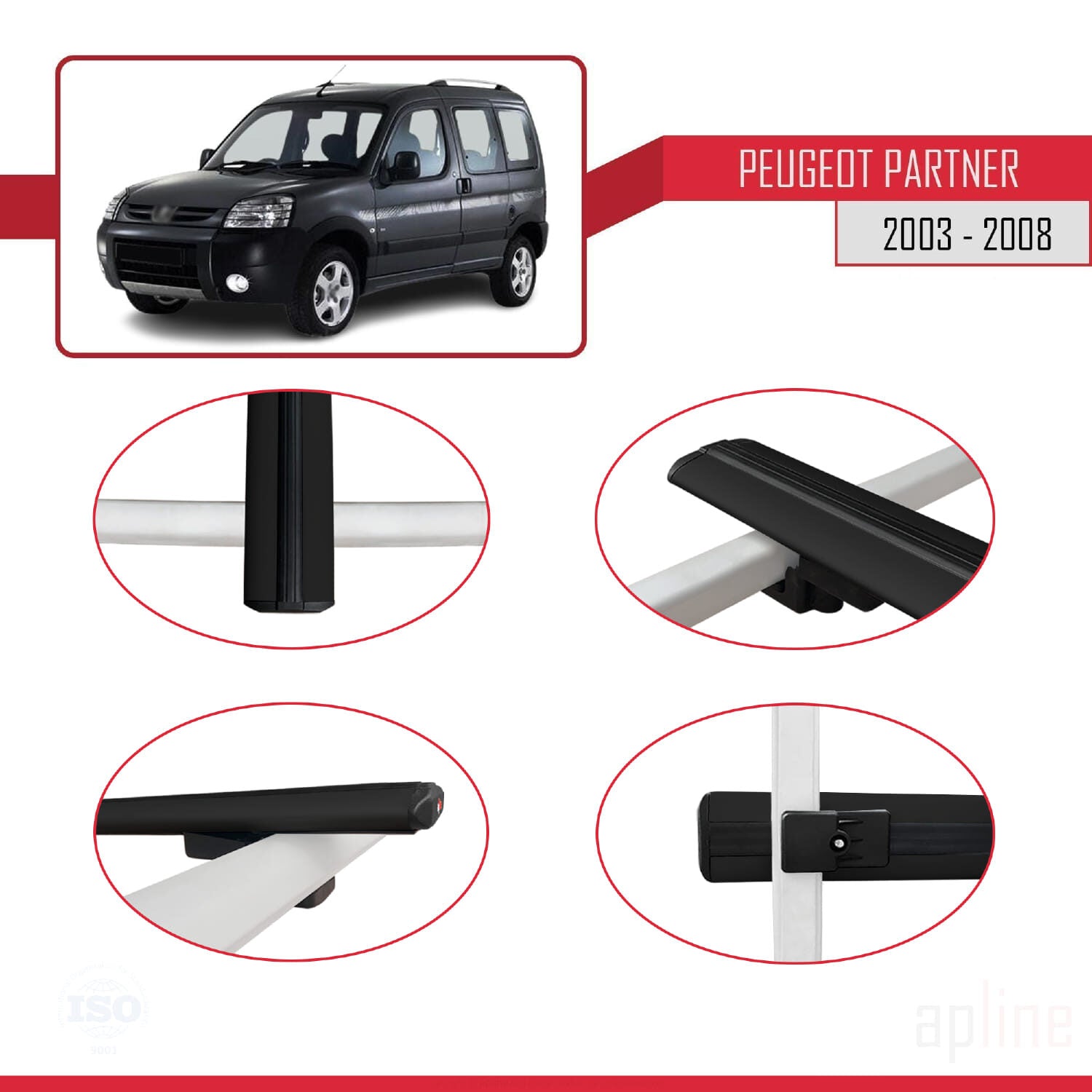 Compatible avec Peugeot Partner Post-Facelift 2003-2008 BASIC Model Barres de Toit Railing Porte-Bagages de Voiture Noir Aluminium 4 Barres