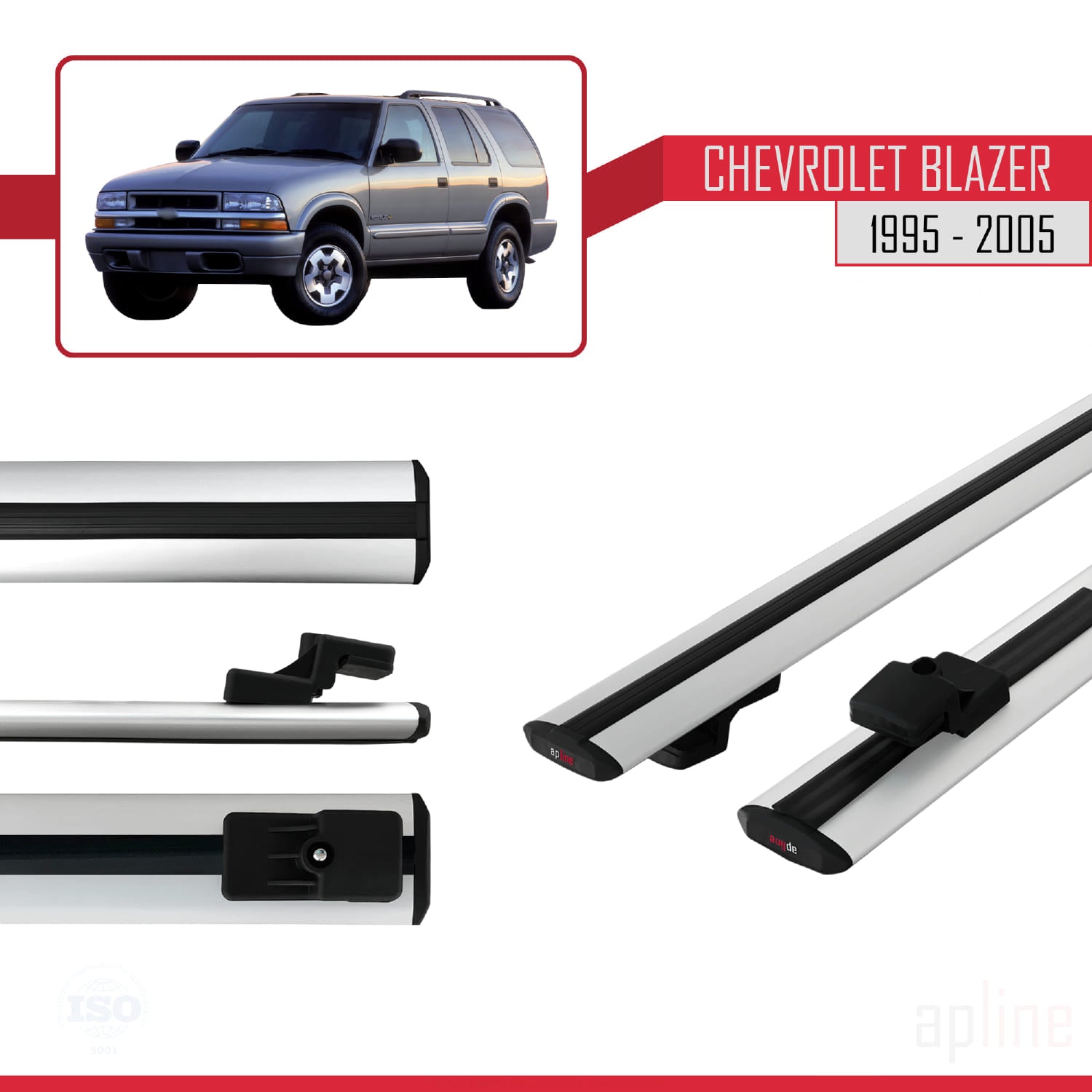 Compatible avec Chevrolet Blazer 1995-2005 BASIC Model Barres de Toit Railing Porte-Bagages de Voiture Gris Aluminium 2 Barres