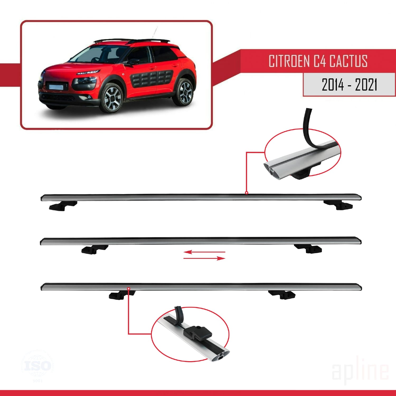 Compatible avec Citroen C4 Cactus 2014-2021 BASIC Model Barres de Toit Railing Porte-Bagages de Voiture Gris Aluminium 3 Barres