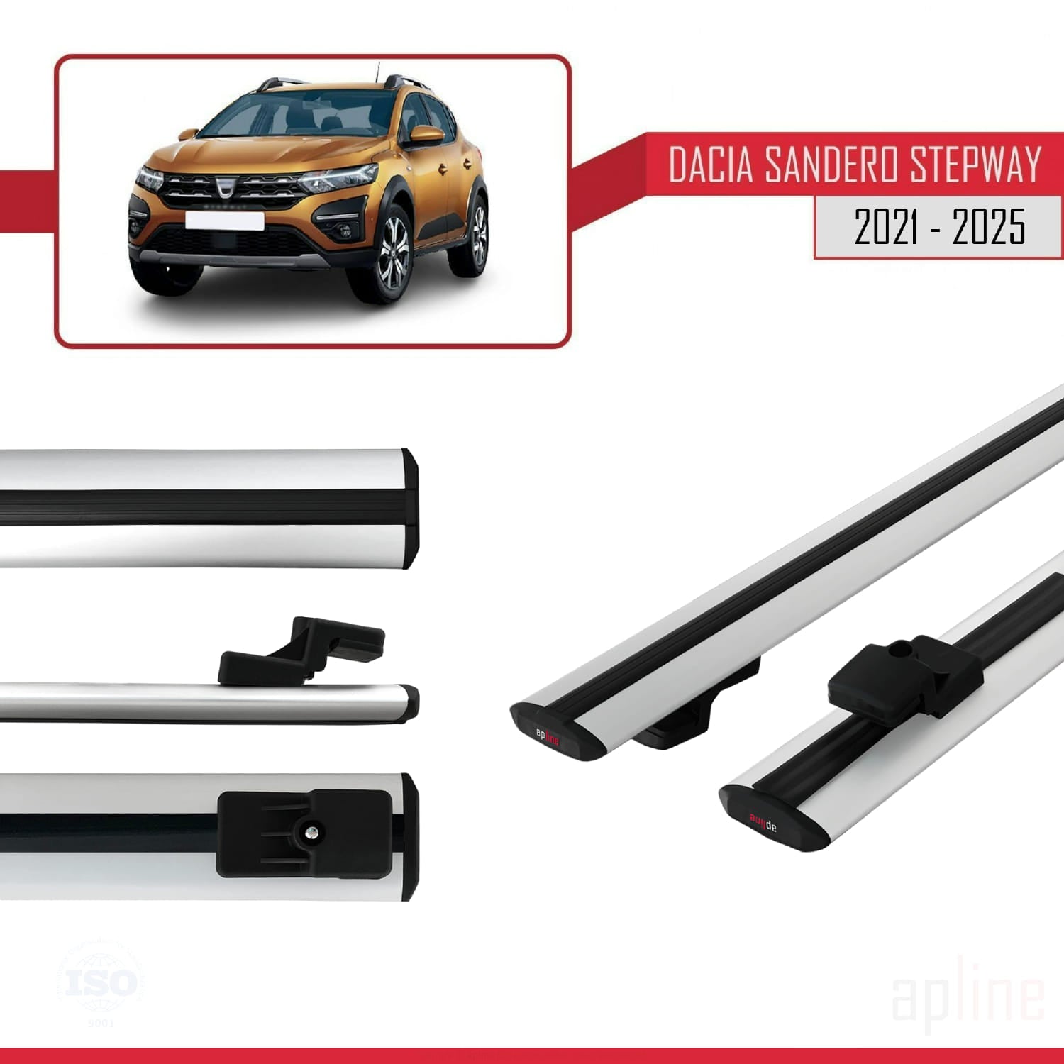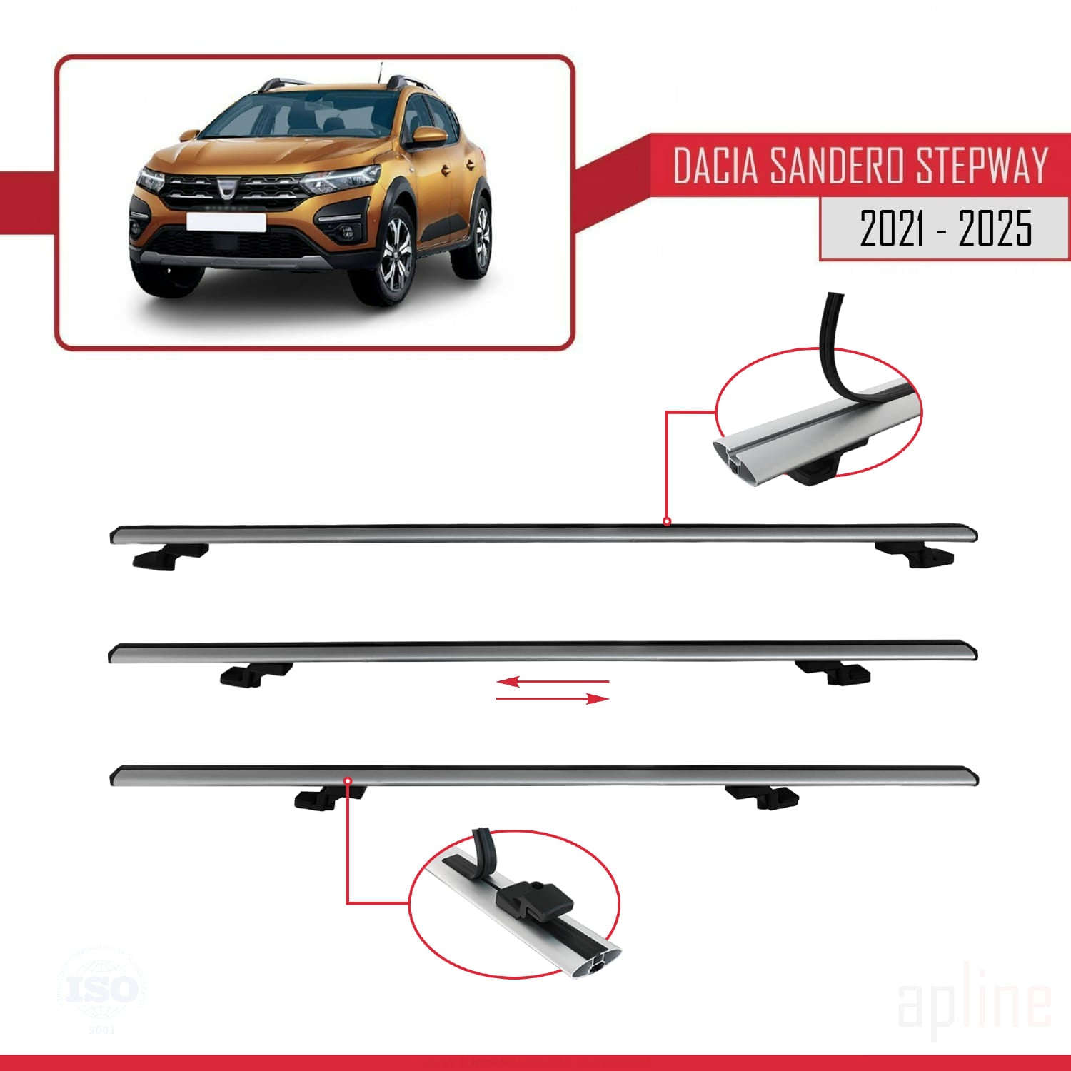 Compatible avec Dacia Sandero Stepway 3 2021-2025 BASIC Model Barres de Toit Railing Porte-Bagages de Voiture Gris Aluminium 2 Barres