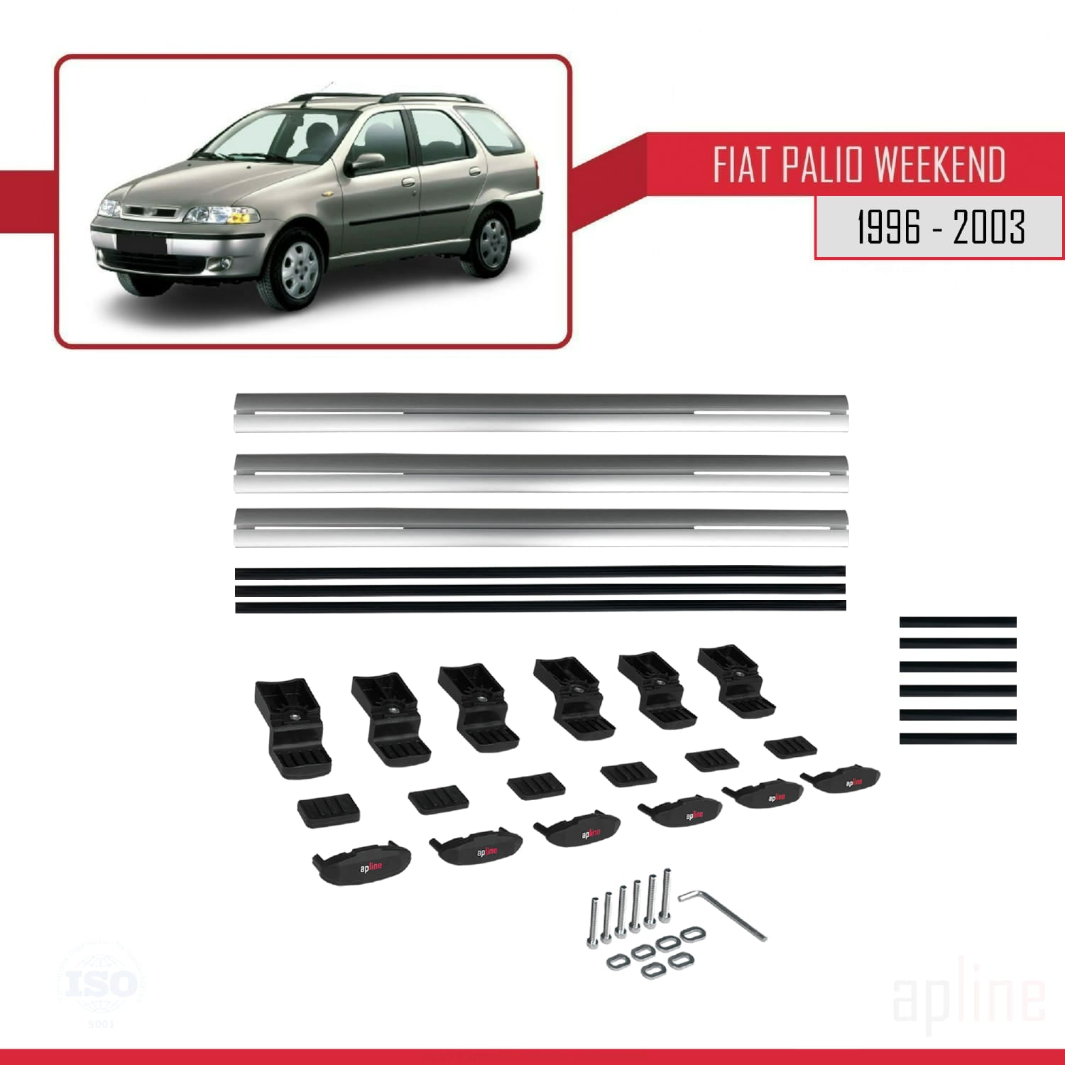 Compatible avec Fiat Palio (178) Weekend 1996-2003 BASIC Model Barres de Toit Railing Porte-Bagages de Voiture Gris Aluminium 3 Barres