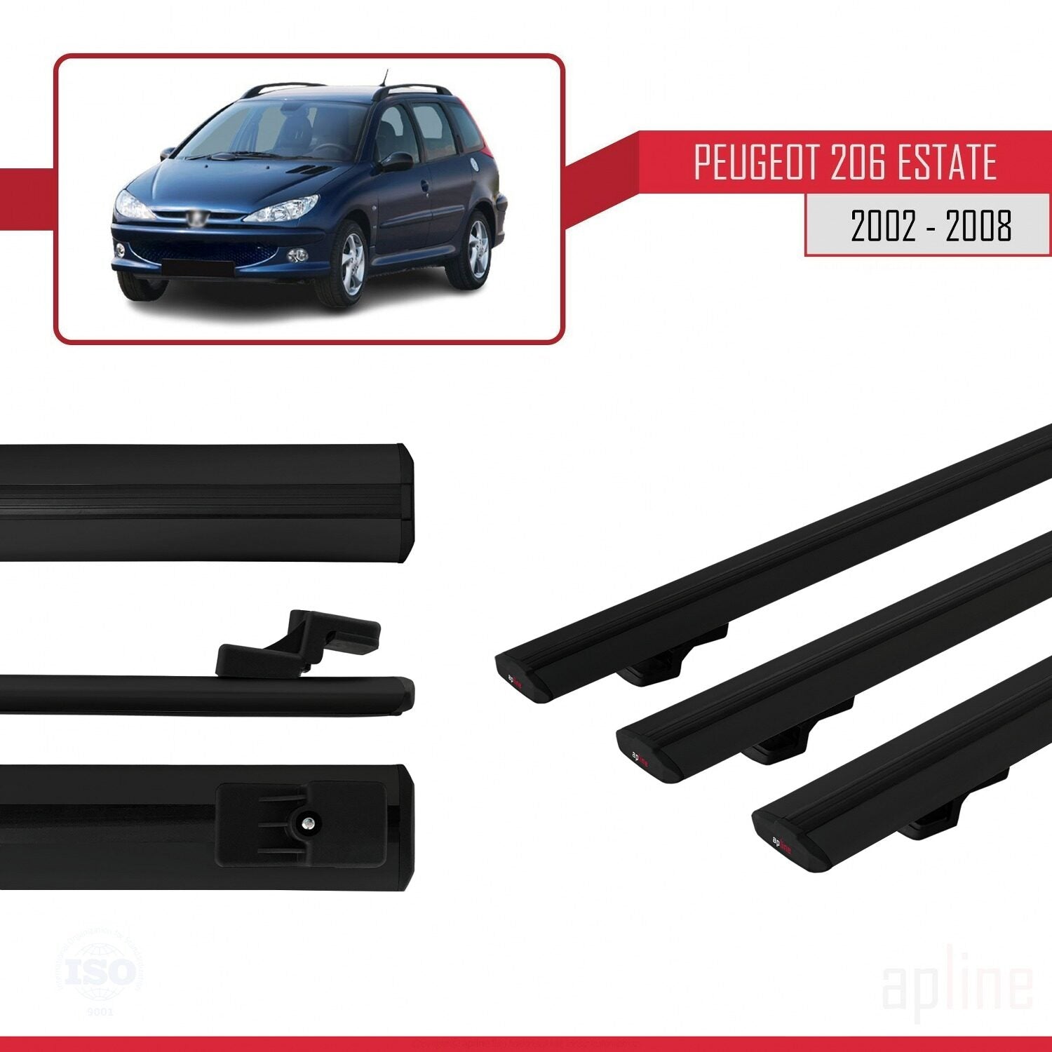 Compatible avec Peugeot 206 Break 2002-2008 BASIC Model Barres de Toit Railing Porte-Bagages de Voiture Noir Aluminium 3 Barres
