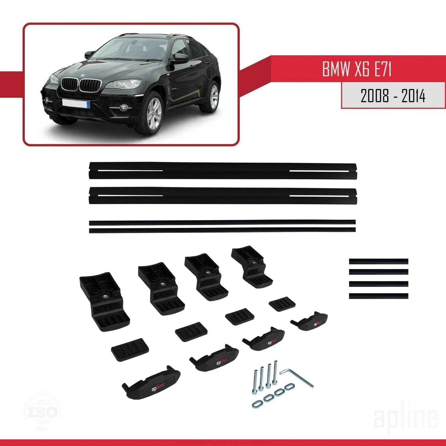 Compatible avec BMW X6 (E71) 2008-2014 BASIC Model Barres de Toit Railing Porte-Bagages de Voiture Noir Aluminium 2 Barres