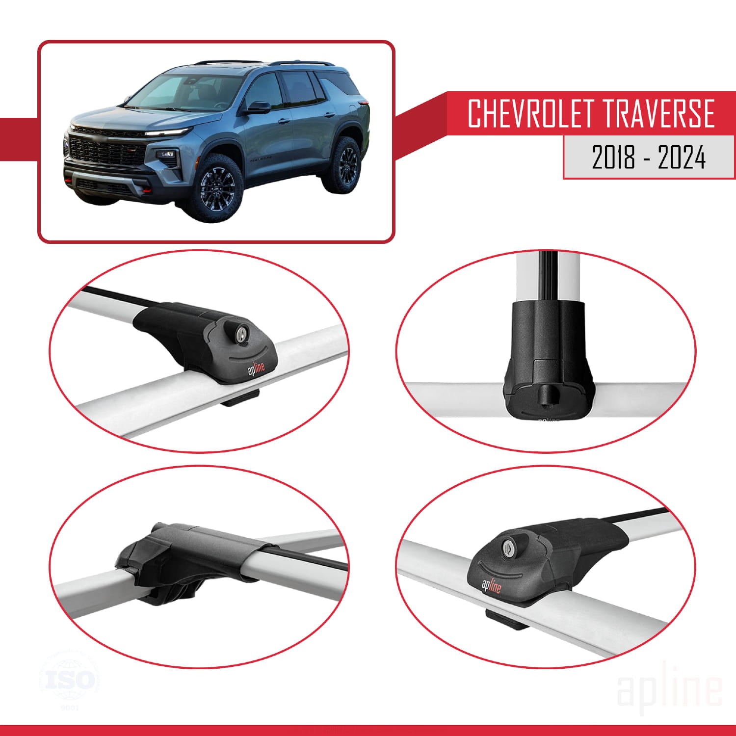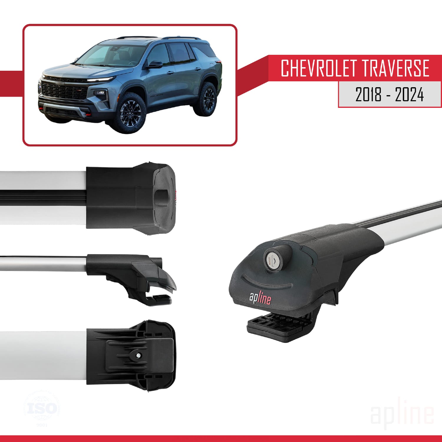 Compatible avec Chevrolet Traverse 2018-2024 ACE-1 Barres de Toit Railing Porte-Bagages de Voiture Gris Aluminium 3 Barres