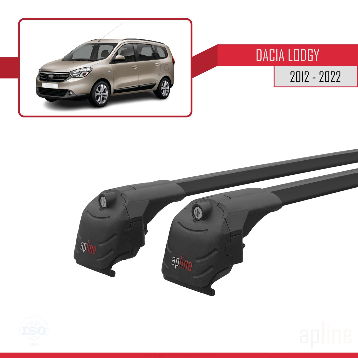 Compatible avec Dacia Lodgy (J92) 2012-2022 ACE-2 Barres de Toit Railing Porte-Bagages de Voiture Noir Aluminium 2 Barres