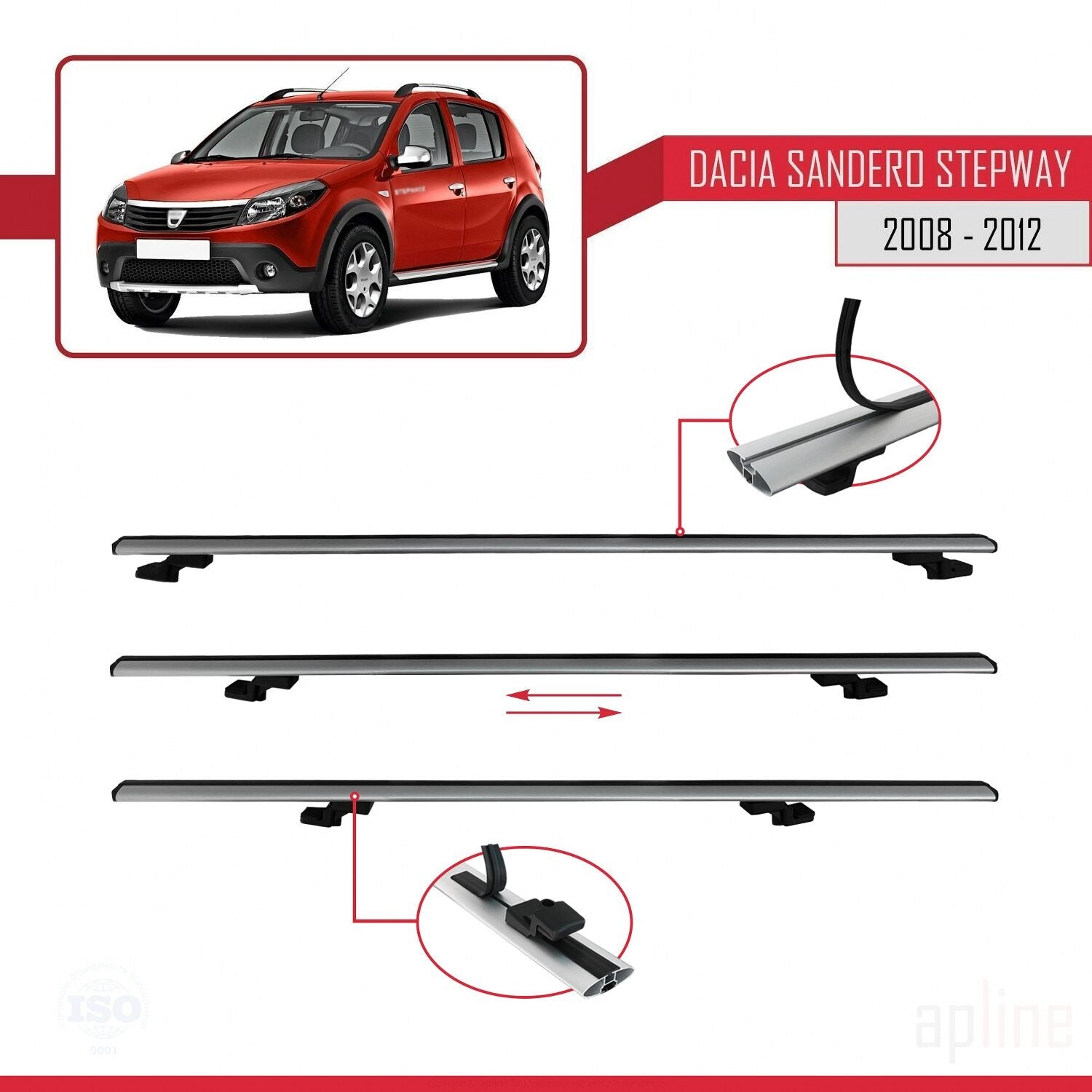 Compatible avec Dacia Sandero Stepway 2008-2012 BASIC Model Barres de Toit Railing Porte-Bagages de Voiture Gris Aluminium 3 Barres