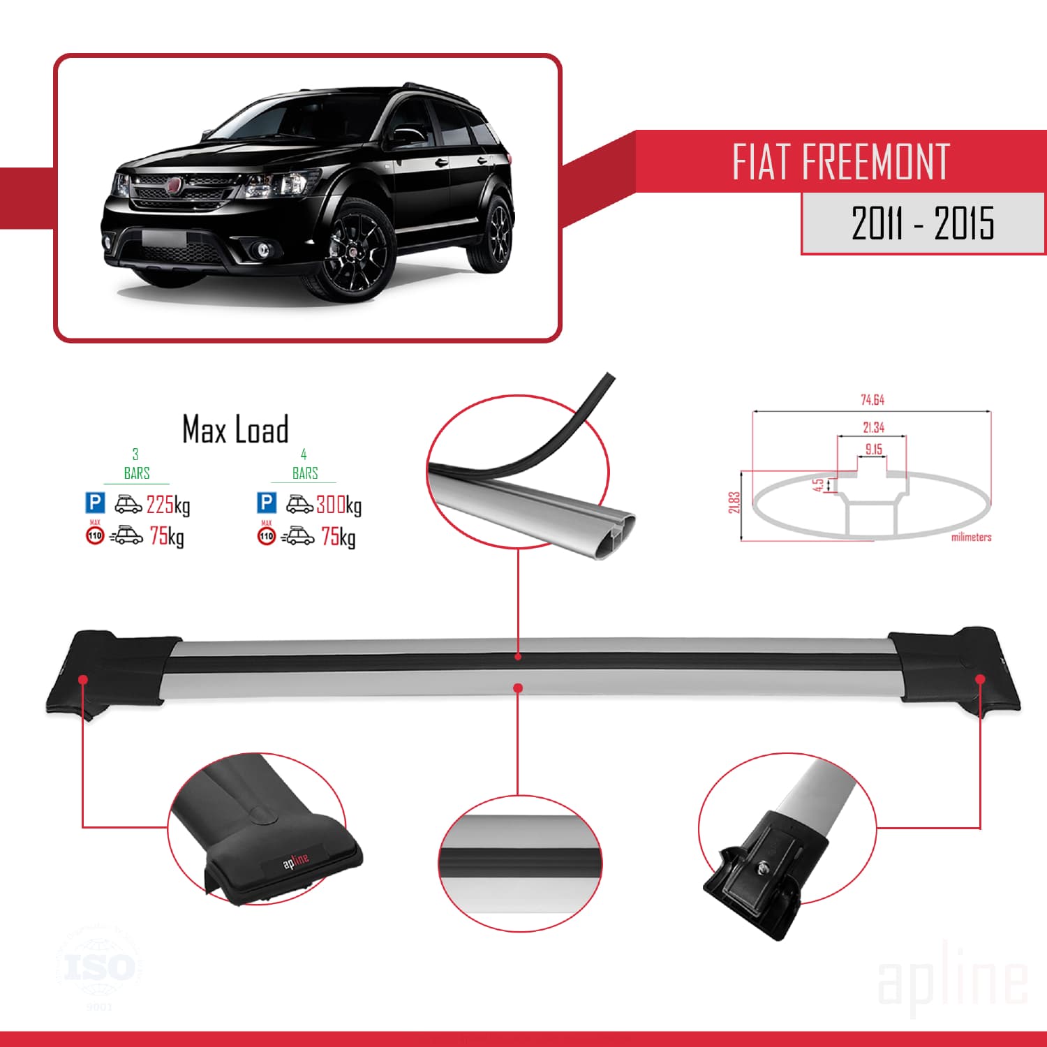 Compatible avec Fiat Freemont 2011-2015 FLY Model Barres de Toit Railing Porte-Bagages de Voiture Gris Aluminium 3 Barres