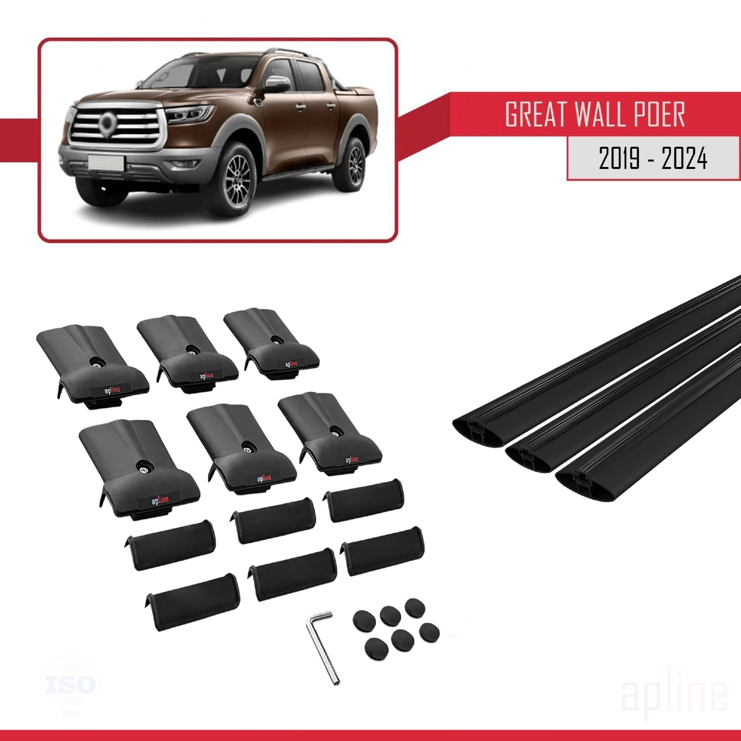 Compatible avec Great Wall Poer 2019-2025 FLY Model Barres de Toit Railing Porte-Bagages de Voiture Noir Aluminium 3 Barres