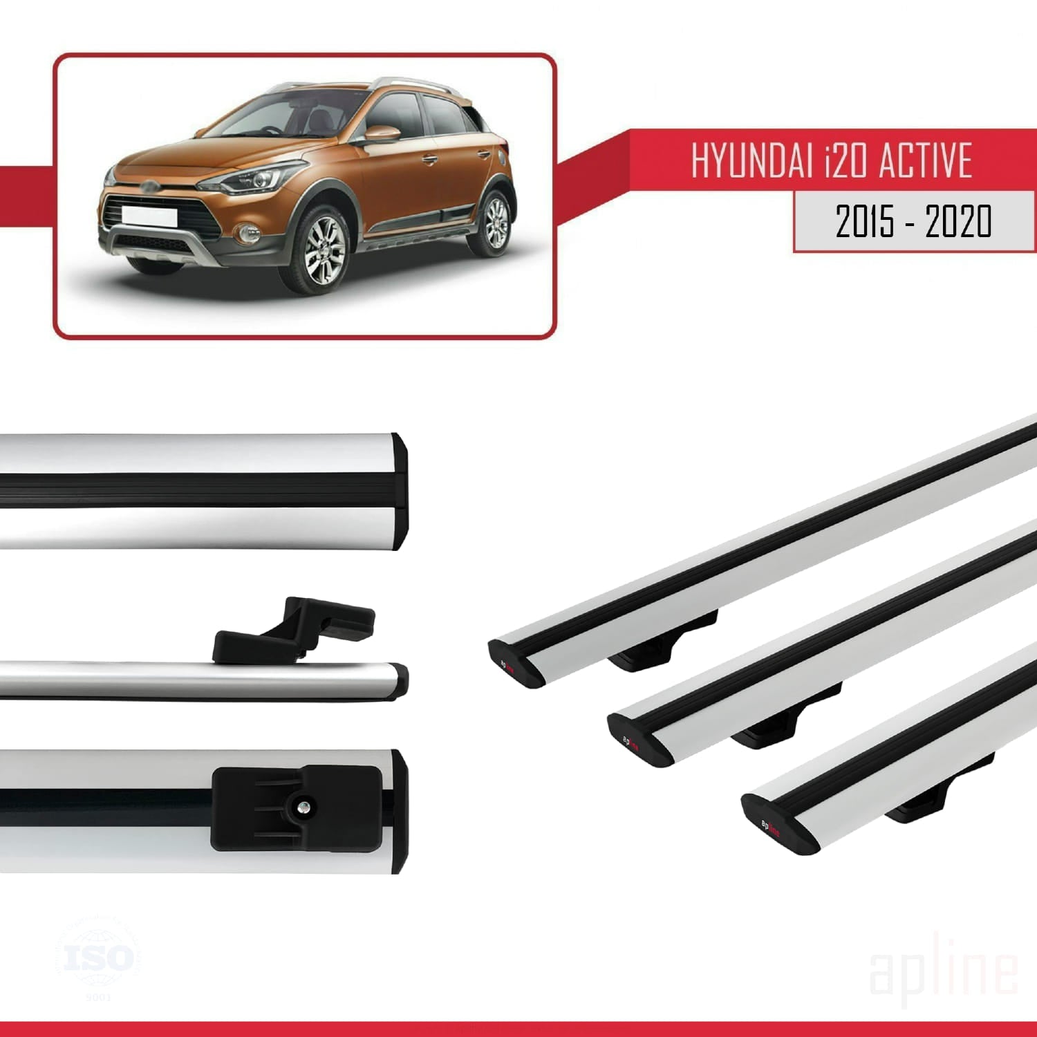Compatible avec Hyundai i20 II Active 2015-2019 BASIC Model Barres de Toit Railing Porte-Bagages de Voiture Gris Aluminium 3 Barres