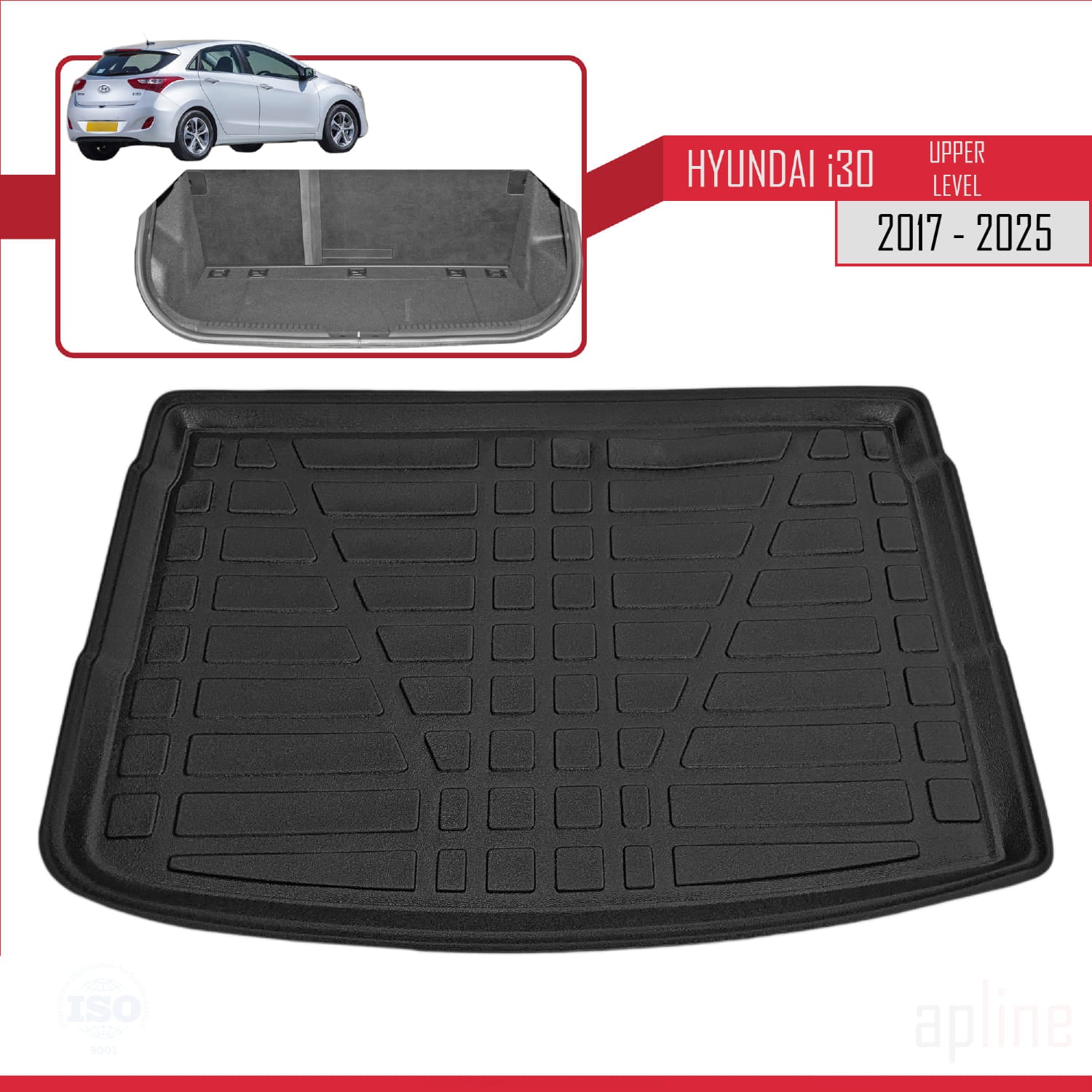 Compatible avec Hyundai i30 3 (PD) 2017-2025 Flexible Tapis de Coffre Plancher de Chargement Supérieur Noir