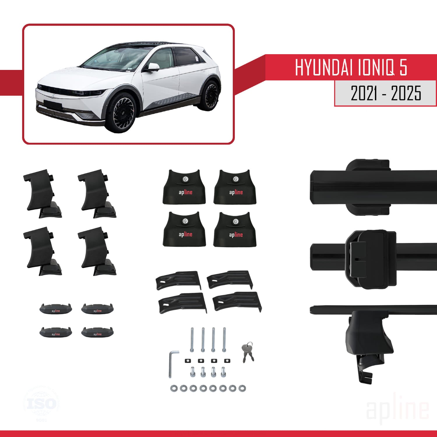 Compatible avec Hyundai Ioniq 5 (NE) 2021-2025 ACE-4 Barres de Toit Railing Porte-Bagages de Voiture Noir Aluminium 2 Barres