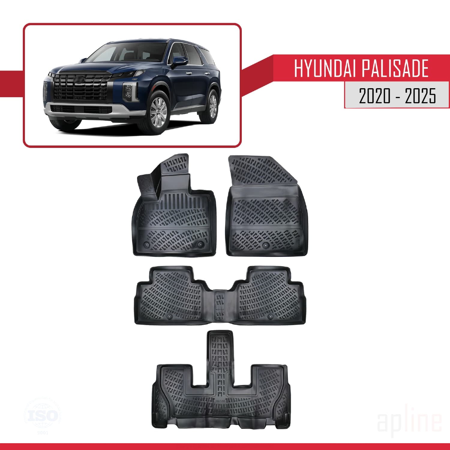 Compatible avec Hyundai Palisade (7 Koltuk) 2020-2025 4D Tapis de Voiture Noir