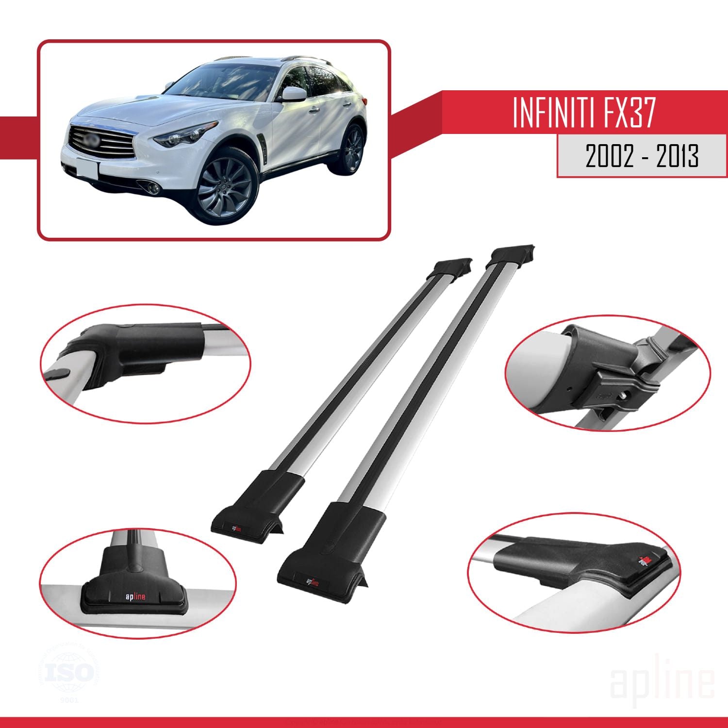 Compatible avec Infiniti FX37 2002-2013 FLY Model Barres de Toit Railing Porte-Bagages de Voiture Gris Aluminium 2 Barres