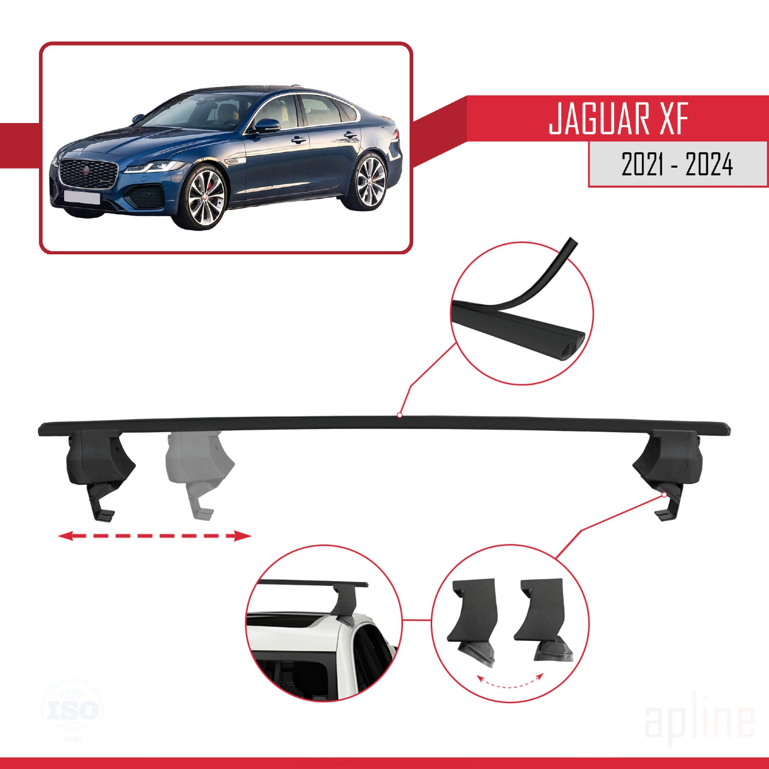 Compatible avec Jaguar XF (X260) Post-Facelift 2021-2024 ACE-4 Barres de Toit Railing Porte-Bagages de Voiture Noir Aluminium 2 Barres