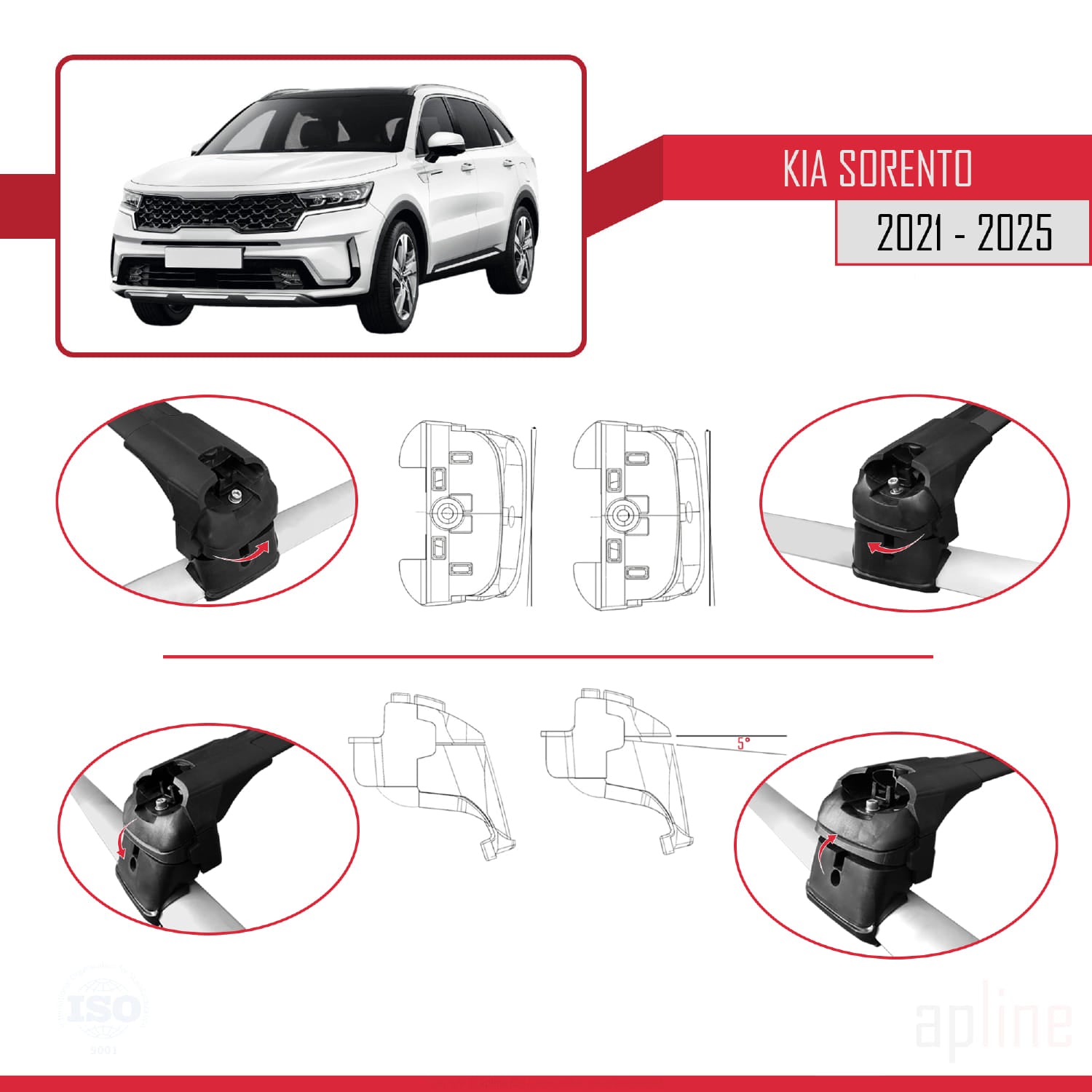Compatible avec Kia Sorento 4 (MQ4) 2021-2025 ACE-2 Barres de Toit Railing Porte-Bagages de Voiture Noir Aluminium 2 Barres