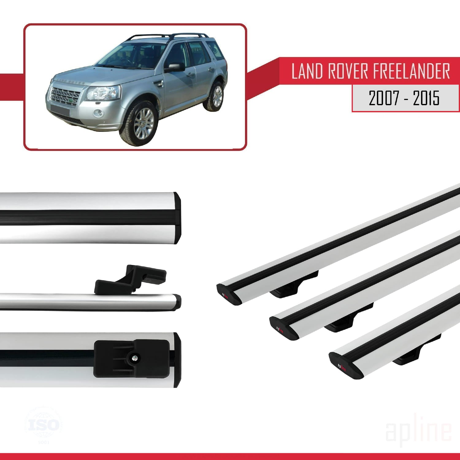 Compatible avec Land Rover Freelander 2 (L359) 2007-2015 BASIC Model Barres de Toit Railing Porte-Bagages de Voiture Gris Aluminium 3 Barres