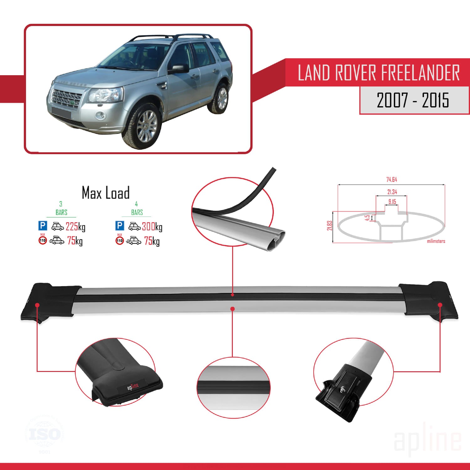 Compatible avec Land Rover Freelander 2 (L359) 2007-2015 FLY Model Barres de Toit Railing Porte-Bagages de Voiture Gris Aluminium 3 Barres
