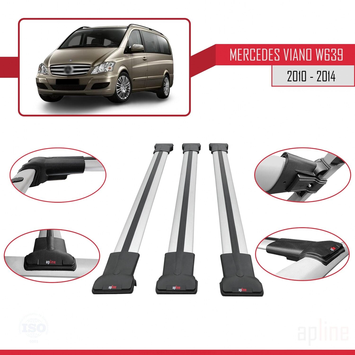 Compatible avec Mercedes Viano 2 (W639) Post-Facelift 2010-2014 FLY Model Barres de Toit Railing Porte-Bagages de Voiture Gris Aluminium 3 Barres