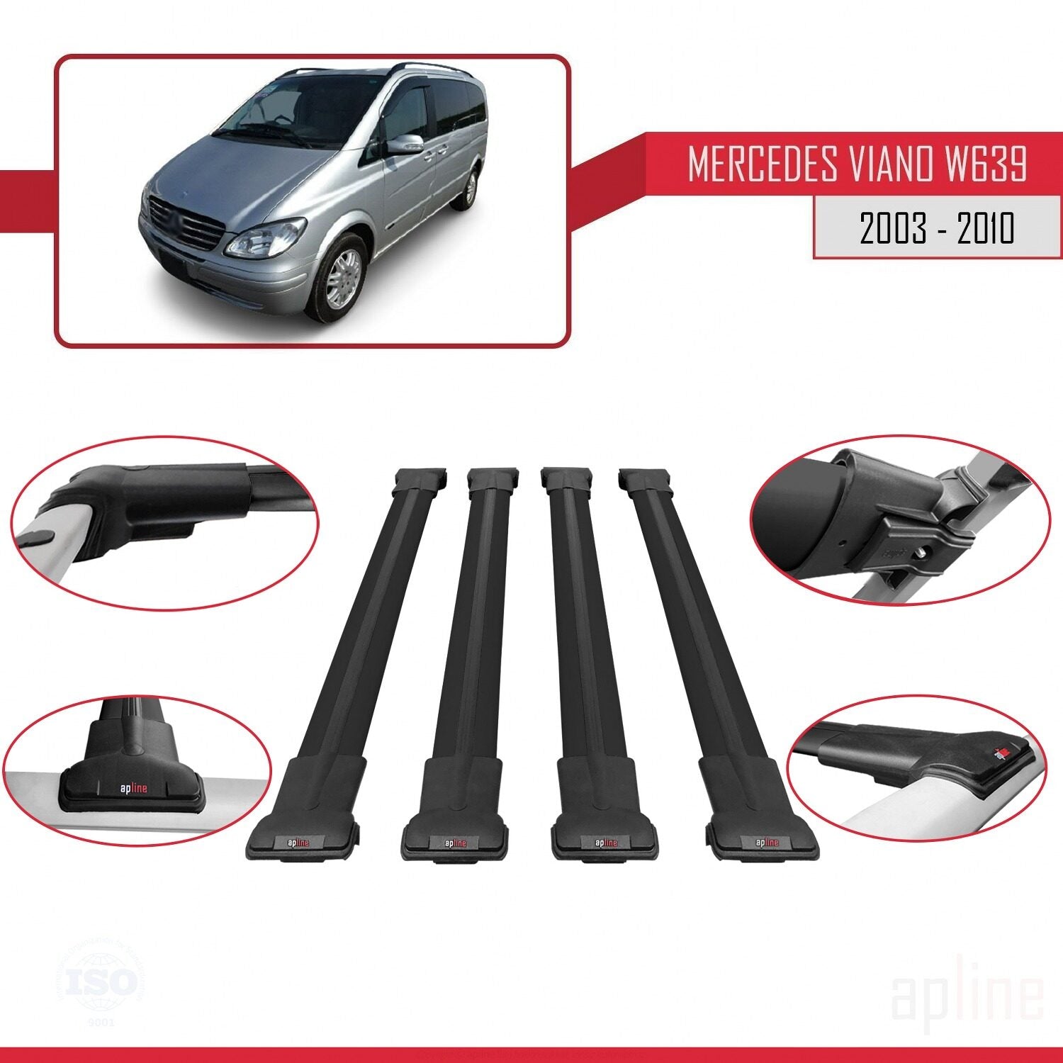 Compatible avec Mercedes Viano 2 (W639) Pre-Facelift 2003-2010 FLY Model Barres de Toit Railing Porte-Bagages de Voiture Noir Aluminium 4 Barres