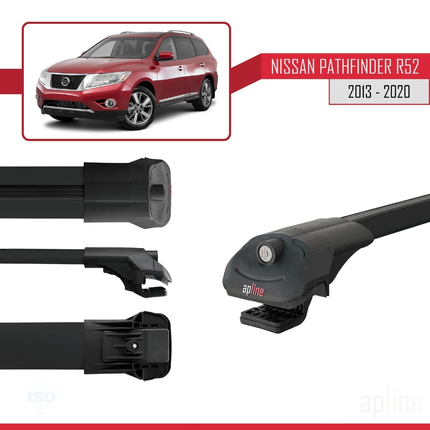 Compatible avec Nissan Pathfinder 4 (R52) 2013-2020 ACE-1 Barres de Toit Railing Porte-Bagages de Voiture Noir Aluminium 3 Barres