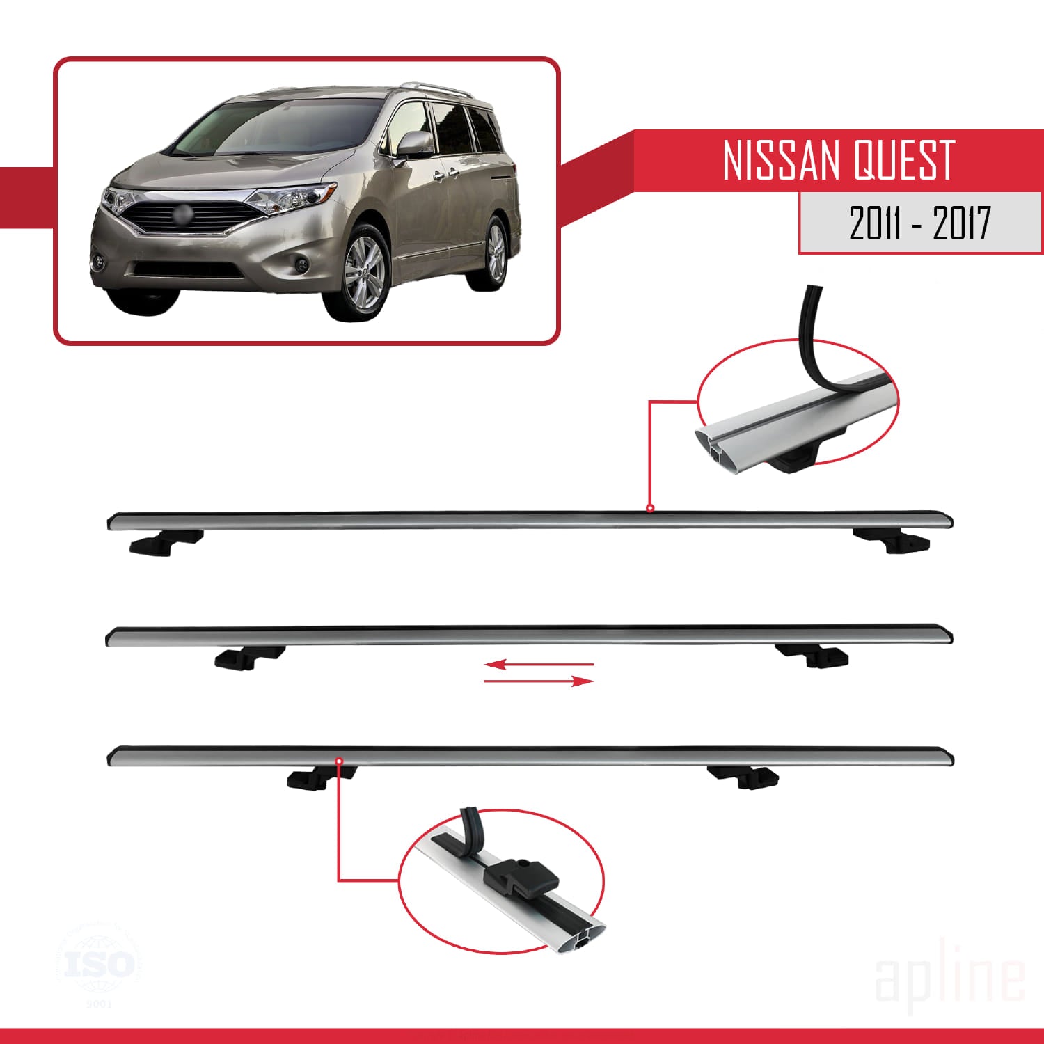 Compatible avec Nissan Quest 2011-2017 BASIC Model Barres de Toit Railing Porte-Bagages de Voiture Gris Aluminium 2 Barres