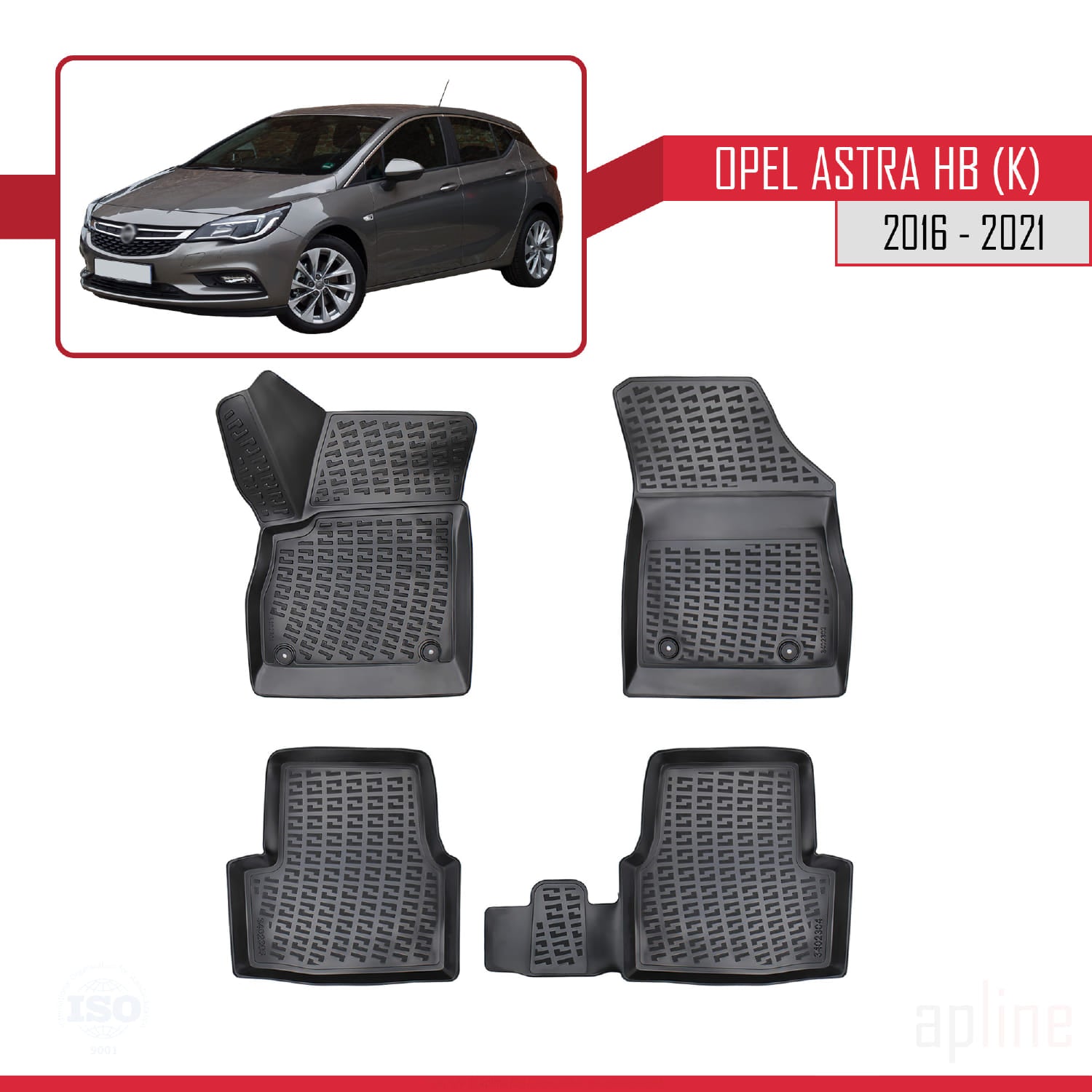 Compatible avec Opel Astra K (B15) HB 2016-2021 4D Tapis de Voiture Noir