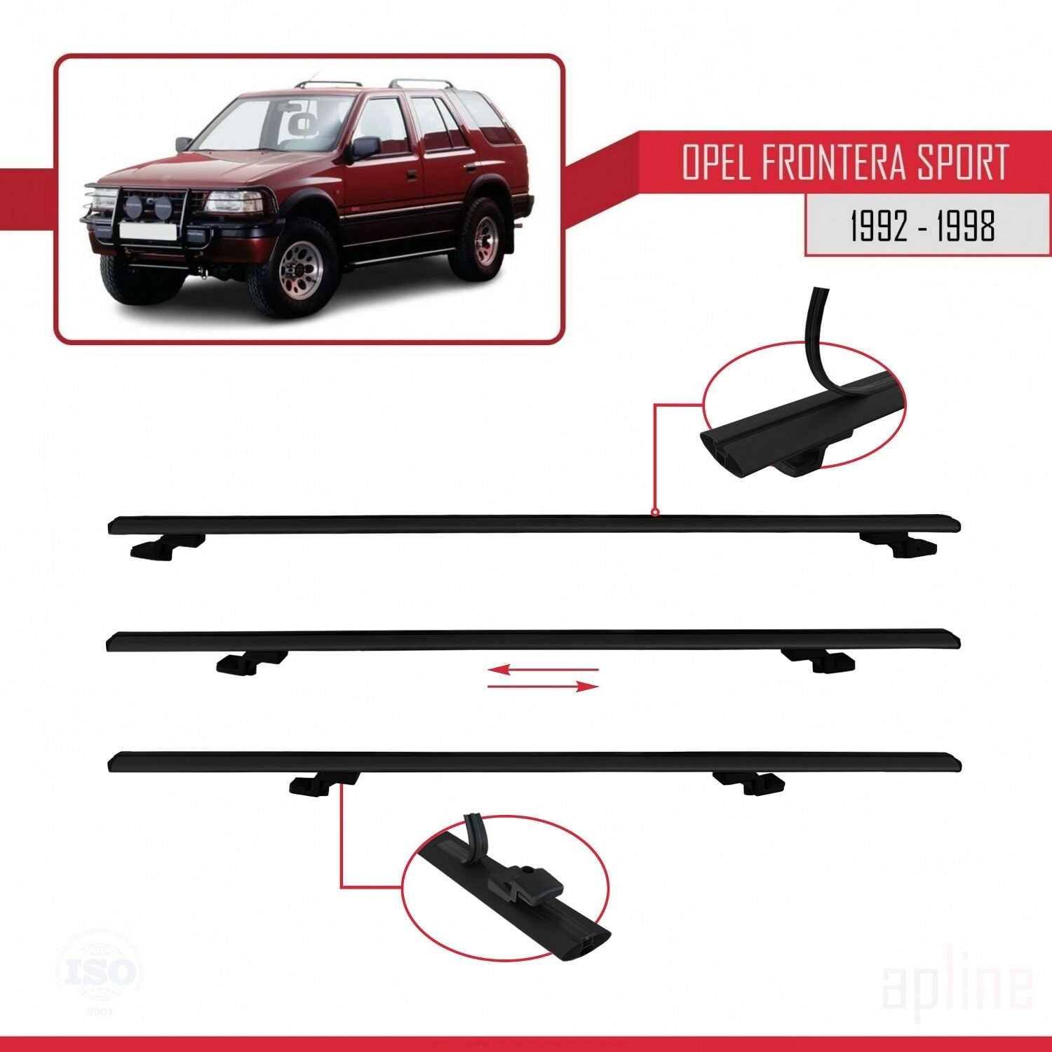 Compatible avec Opel Frontera Sport 1992-1998 BASIC Model Barres de Toit Railing Porte-Bagages de Voiture Noir Aluminium 3 Barres