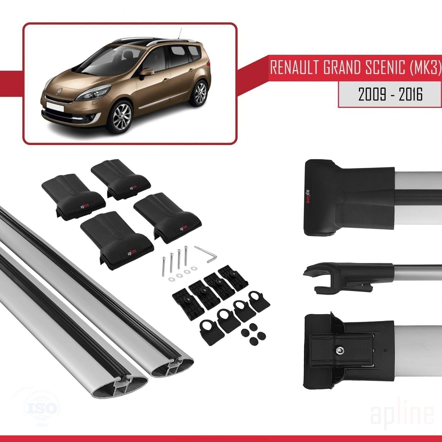 Compatible avec Renault Grand Scenic 3 2009-2016 FLY Model Barres de Toit Railing Porte-Bagages de Voiture Gris Aluminium 2 Barres