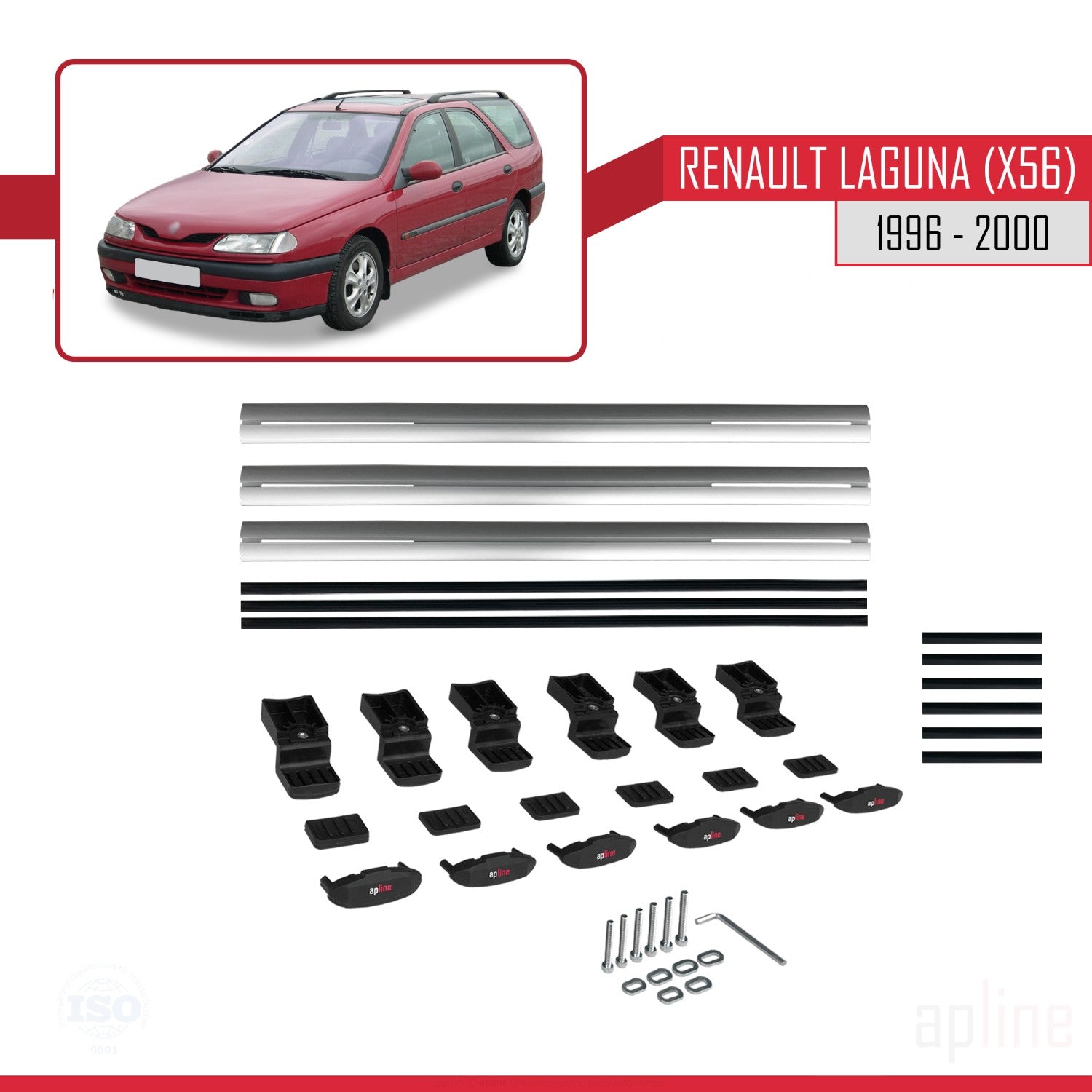 Compatible avec Renault Laguna (X56) 1996-200 BASIC Model Barres de Toit Railing Porte-Bagages de Voiture Gris Aluminium 3 Barres