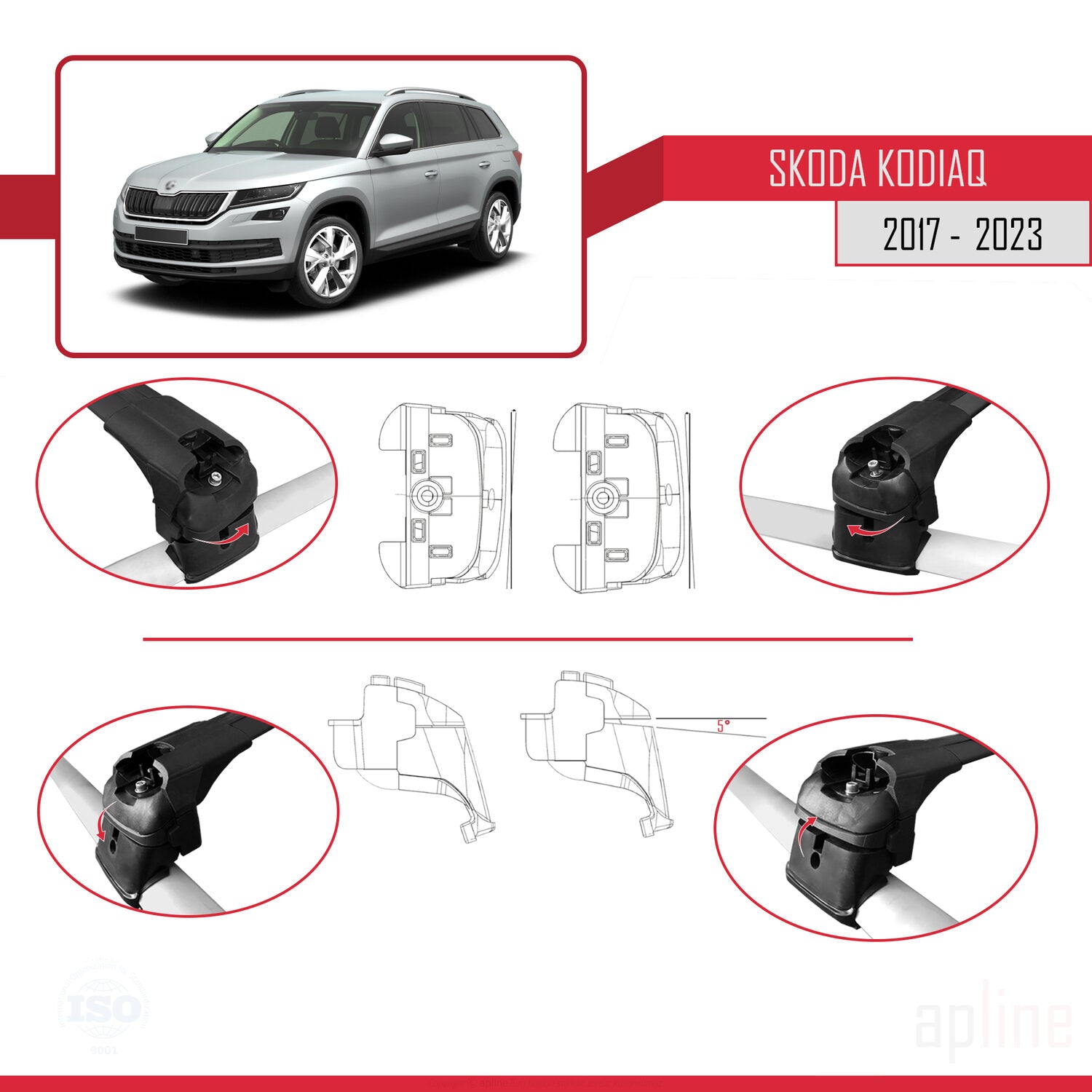 Compatible avec Skoda Kodiaq 2017-2023 ACE-2 Barres de Toit Railing Porte-Bagages de Voiture Noir Aluminium 2 Barres