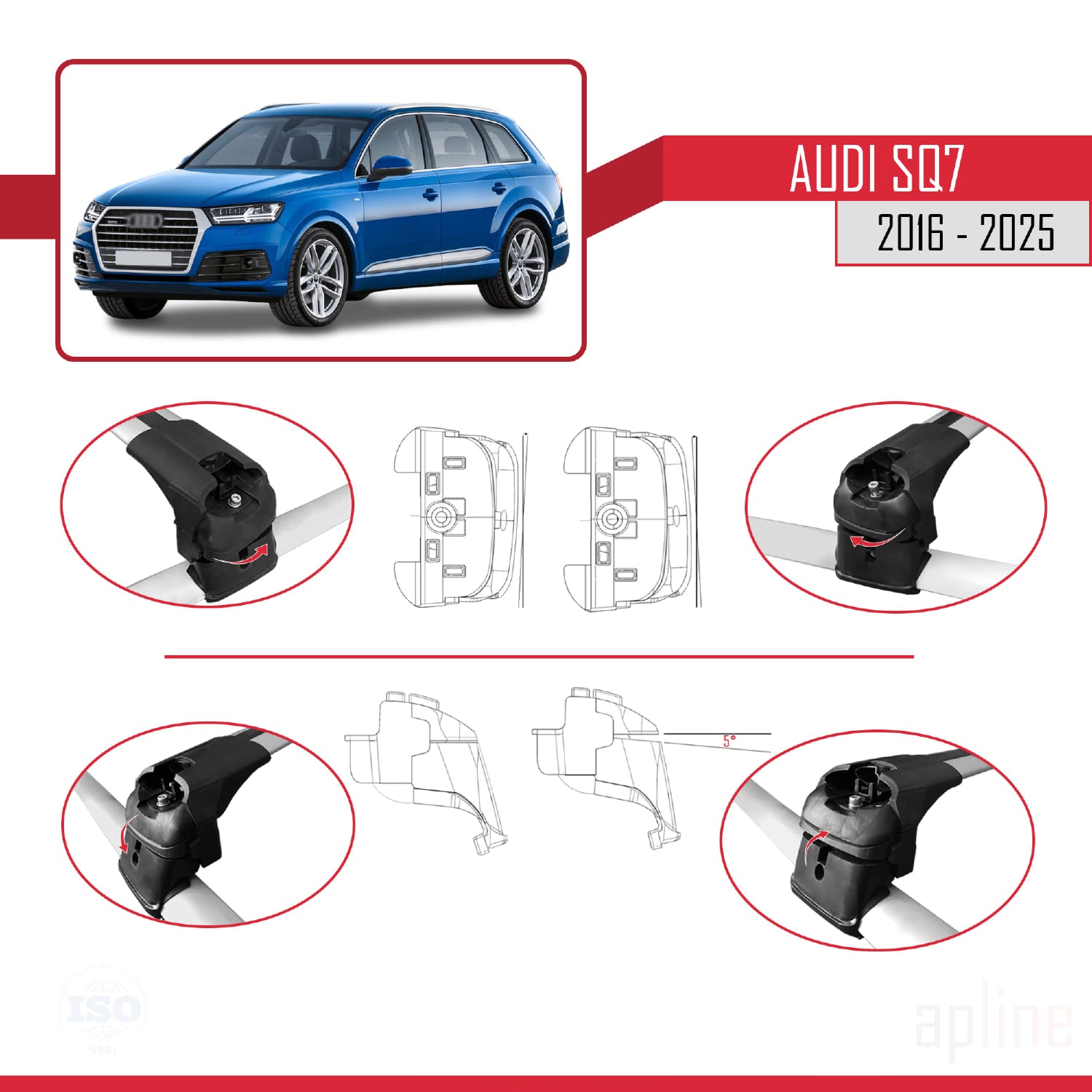 Compatible avec SQ7 (4M) 2016-2025 ACE-2 Barres de Toit Railing Porte-Bagages de Voiture Gris Aluminium 2 Barres