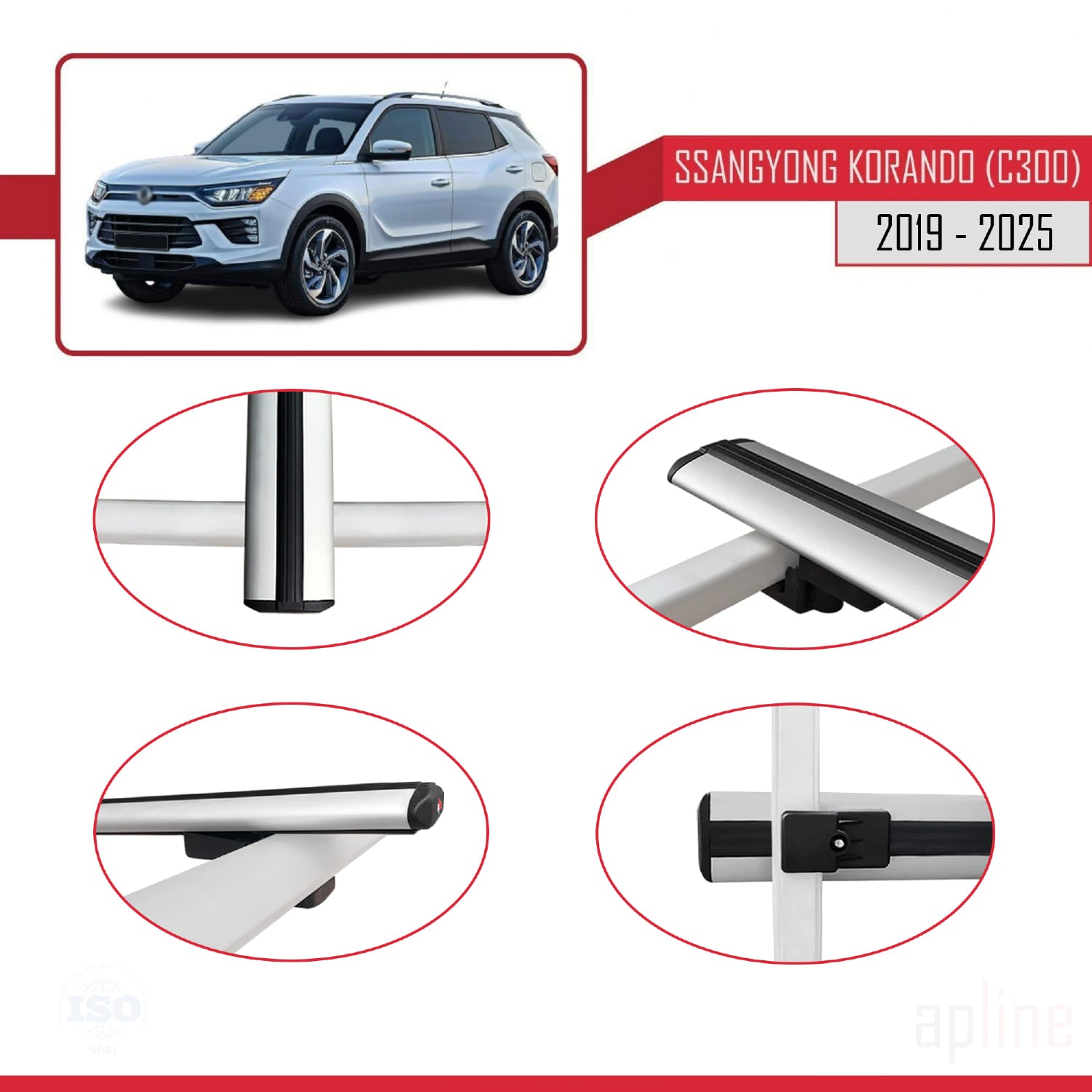 Compatible avec Ssangyong Korando 4 (C300) 2019-2025 BASIC Model Barres de Toit Railing Porte-Bagages de Voiture Gris Aluminium 2 Barres