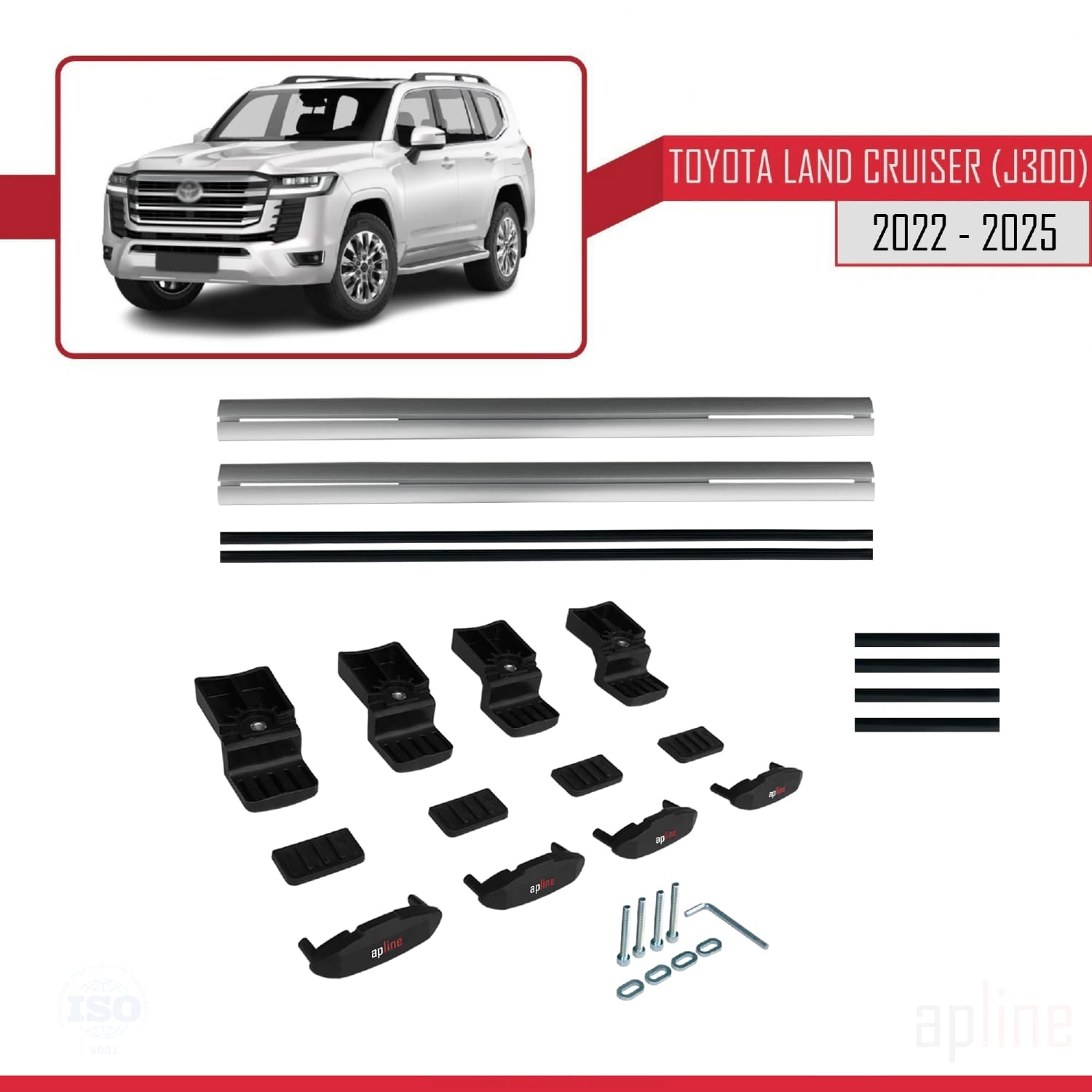 Compatible avec Toyota Land Cruiser (J300) 2022-2025 BASIC Model Barres de Toit Railing Porte-Bagages de Voiture Gris Aluminium 2 Barres