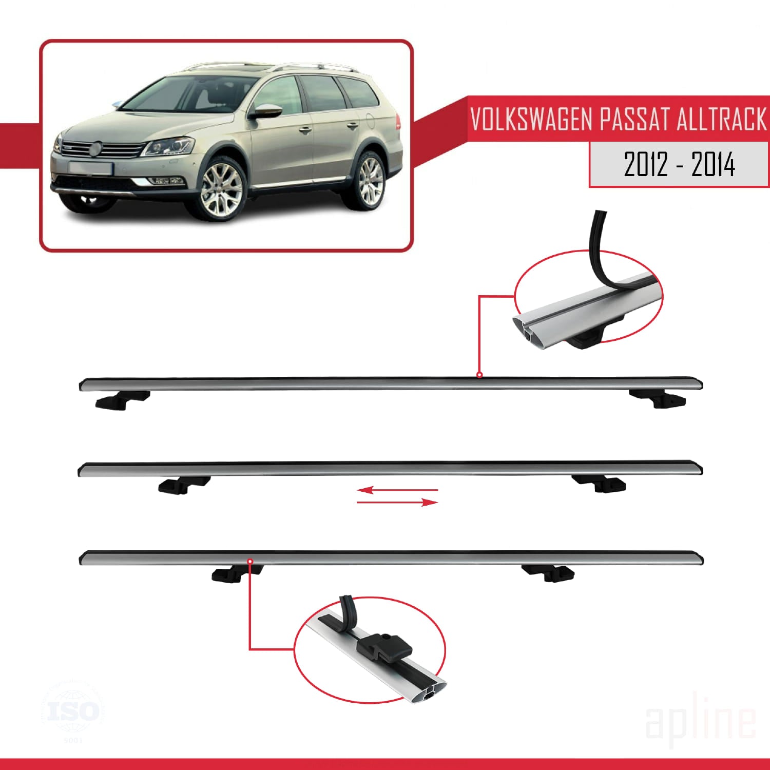 Compatible avec Volkswagen Passat B7 (3C) Alltrack 2012-2014 BASIC Model Barres de Toit Railing Porte-Bagages de Voiture Gris Aluminium 3 Barres