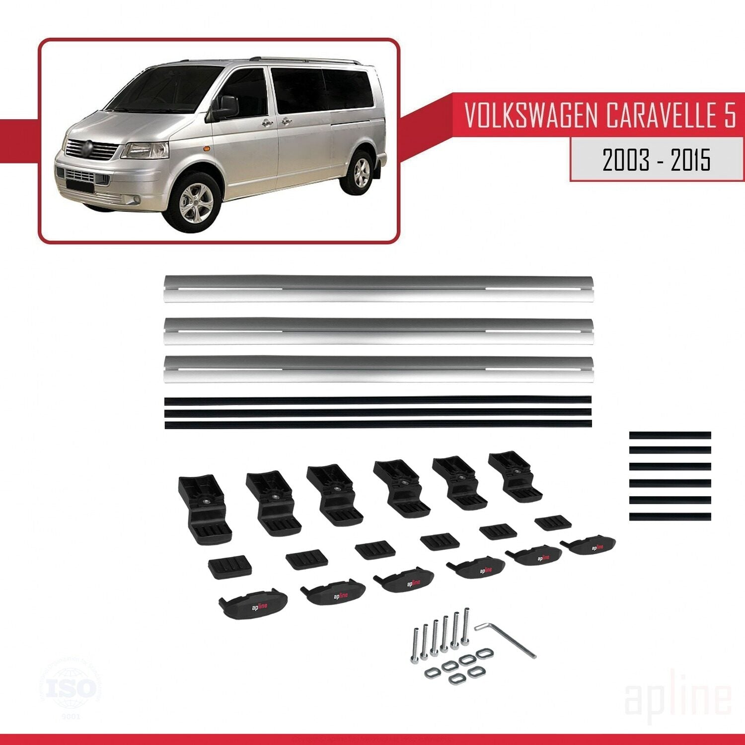 Compatible avec Volkswagen T5 Caravelle 2003-2015 BASIC Model Barres de Toit Railing Porte-Bagages de Voiture Gris Aluminium 3 Barres