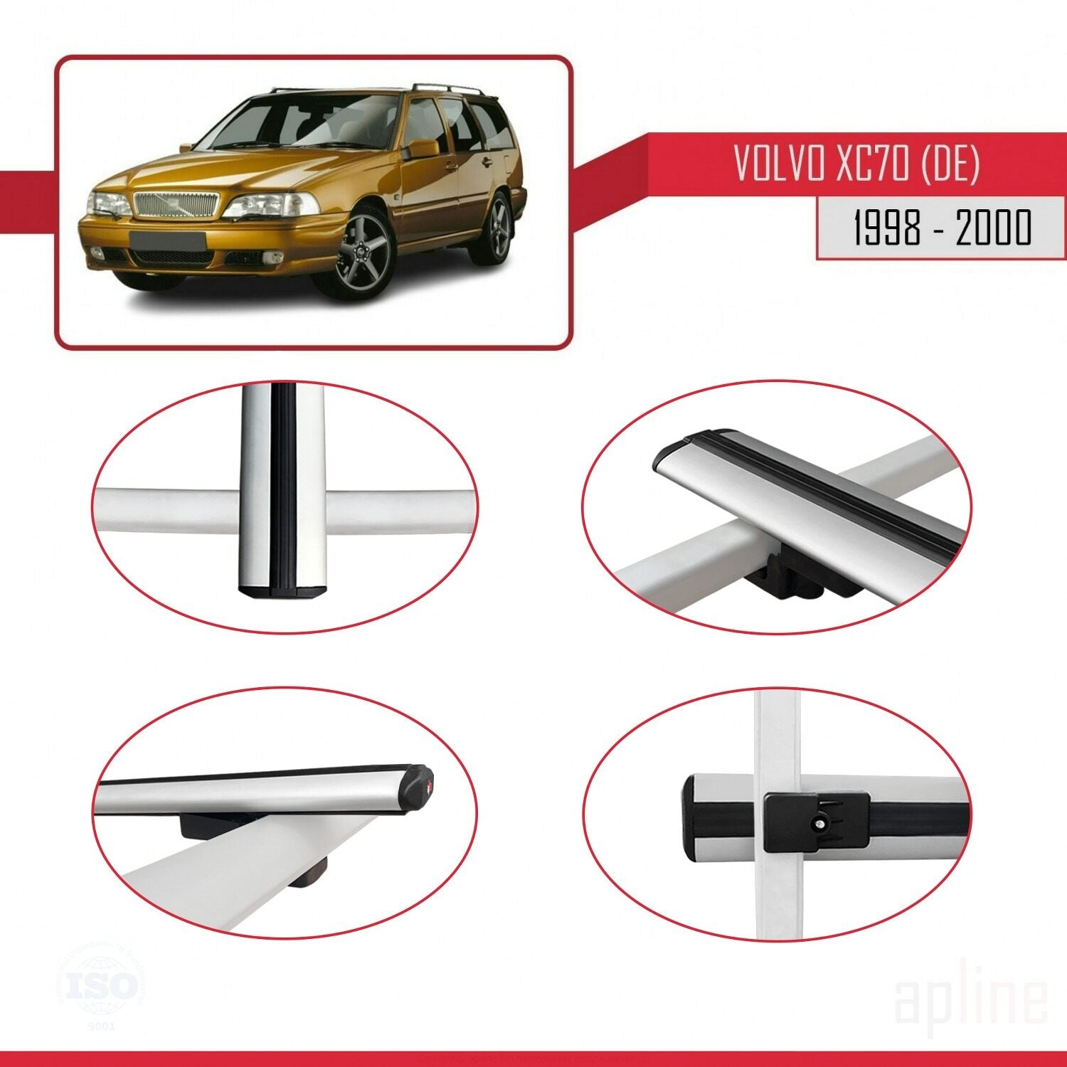 Compatible avec Volvo XC70 1998-2000 BASIC Model Barres de Toit Railing Porte-Bagages de Voiture Gris Aluminium 2 Barres