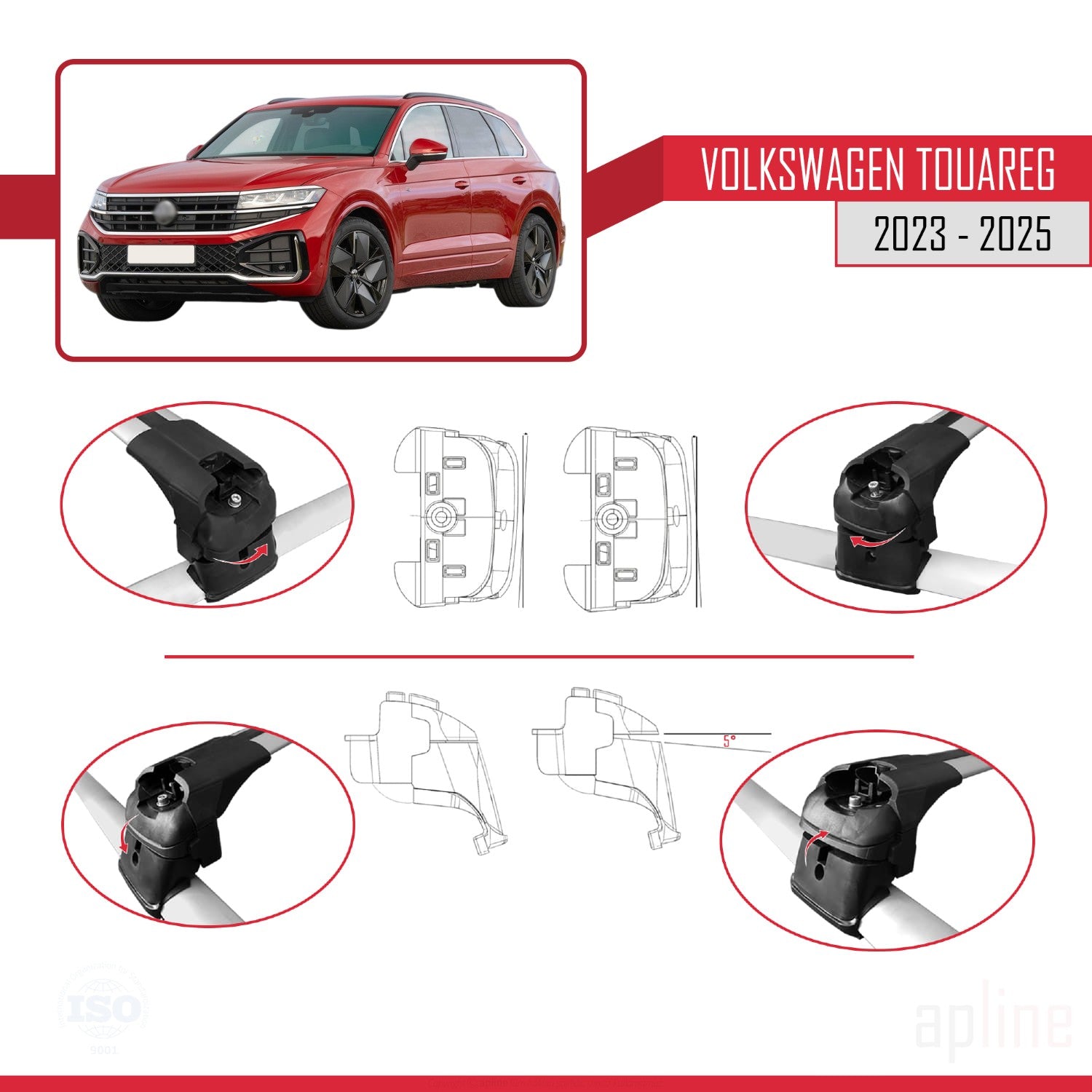 Compatible avec VW Touareg 2023-2025 ACE-2 Barres de Toit Railing Porte-Bagages de Voiture Gris Aluminium 2 Barres